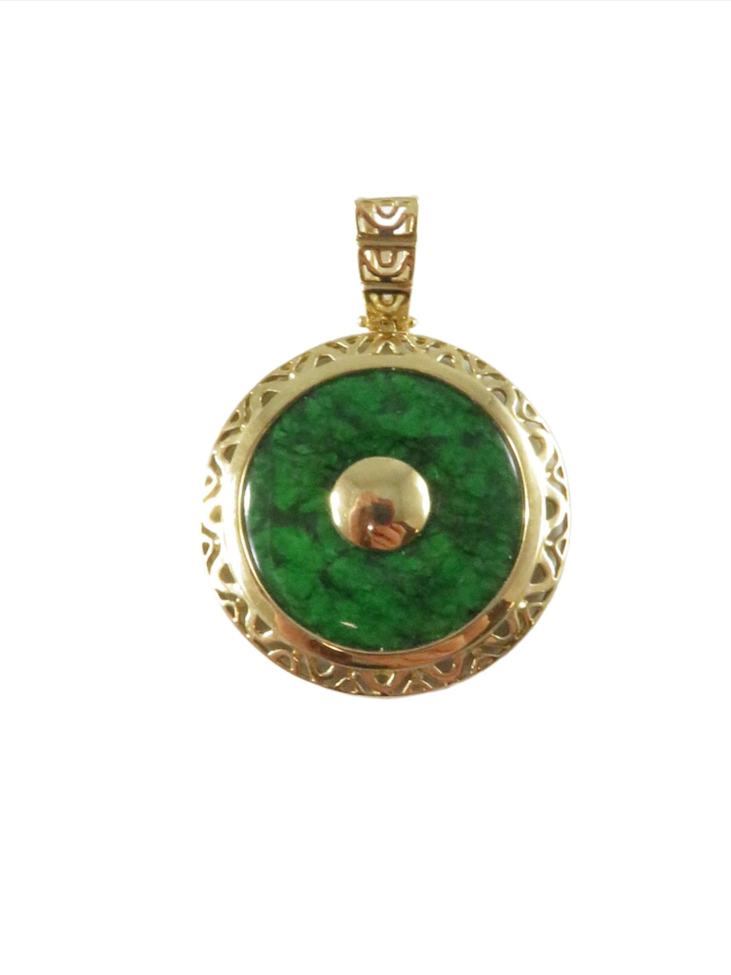 14K Gold Filigree Pendant with Burma Maw-Sit-Sit Malachite Disc with Gold Button