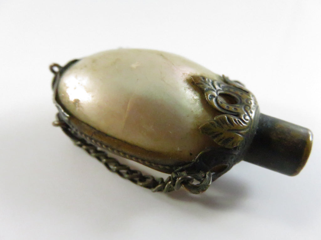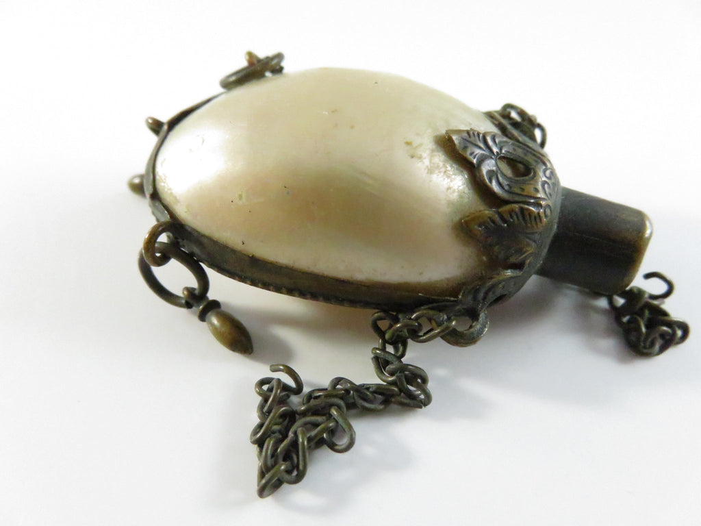 Antique Shell Snuff/Scent Bottle Chatelaine with Brass Wrap – Parts Only