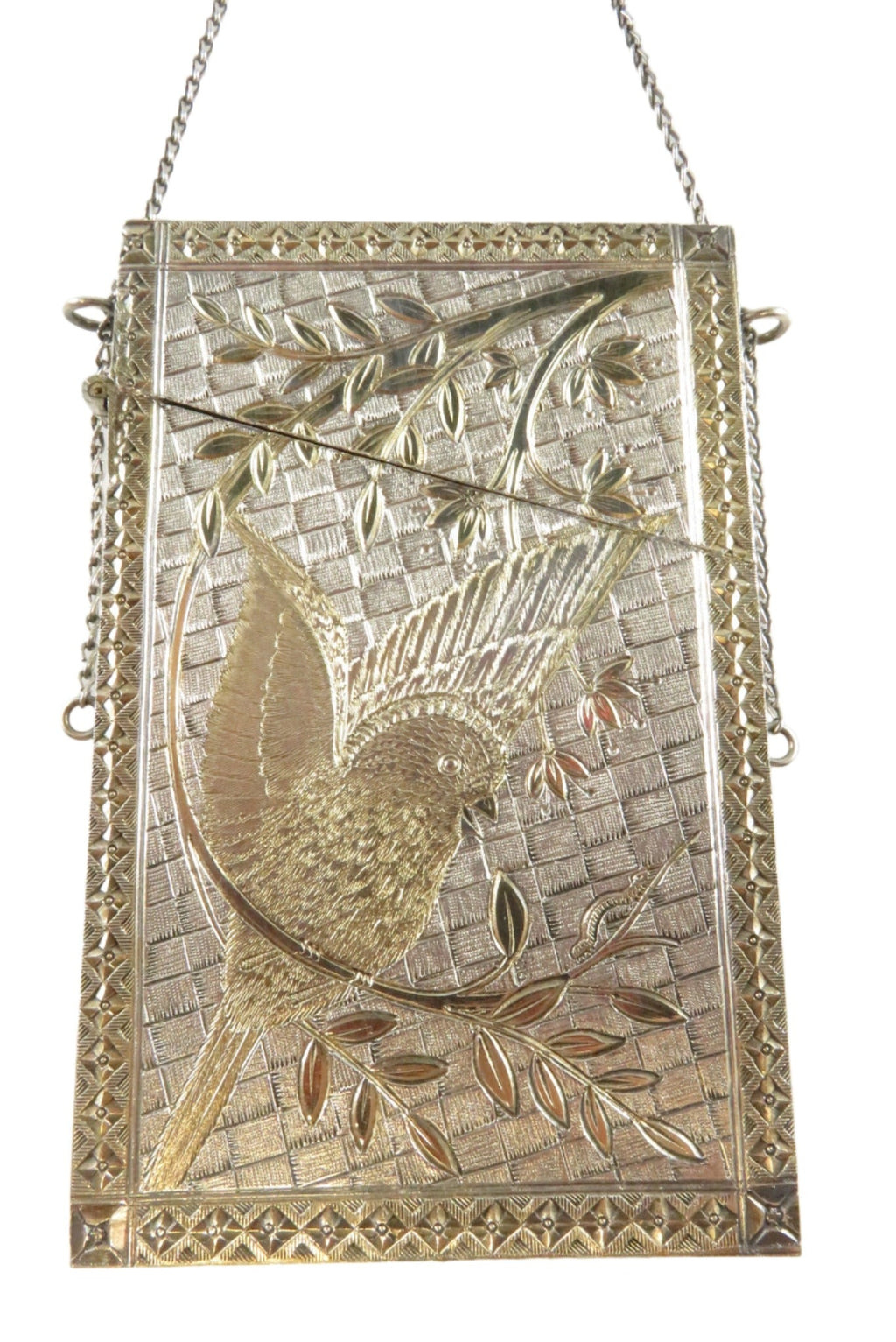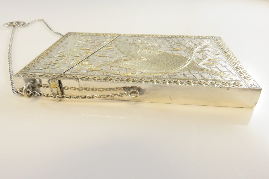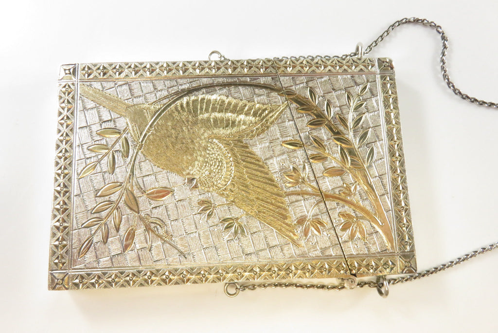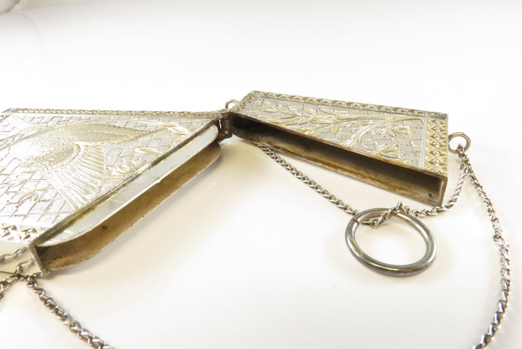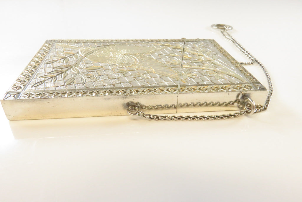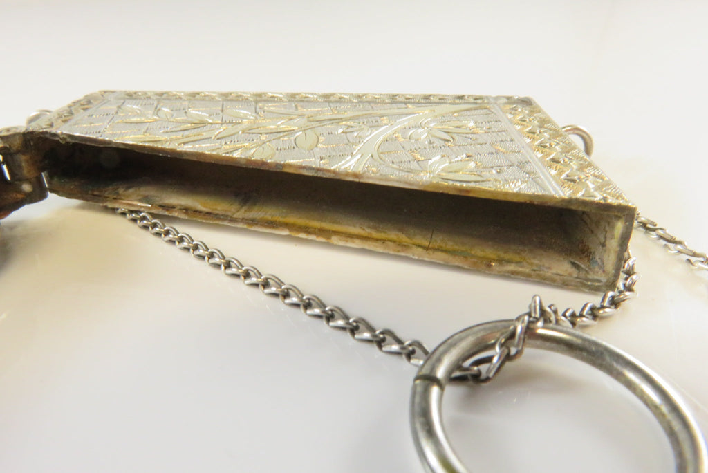 Antique Silver Metal Gold Accented Edwardian Calling Card Chatelaine Case