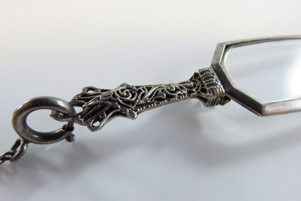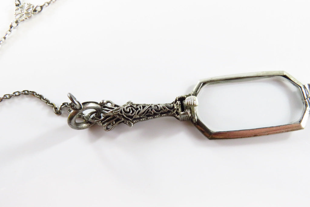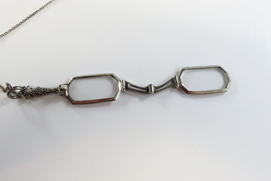 Art Deco 25" Sterling Lariat Necklace with Antique Folding Lorgnette Spectacles