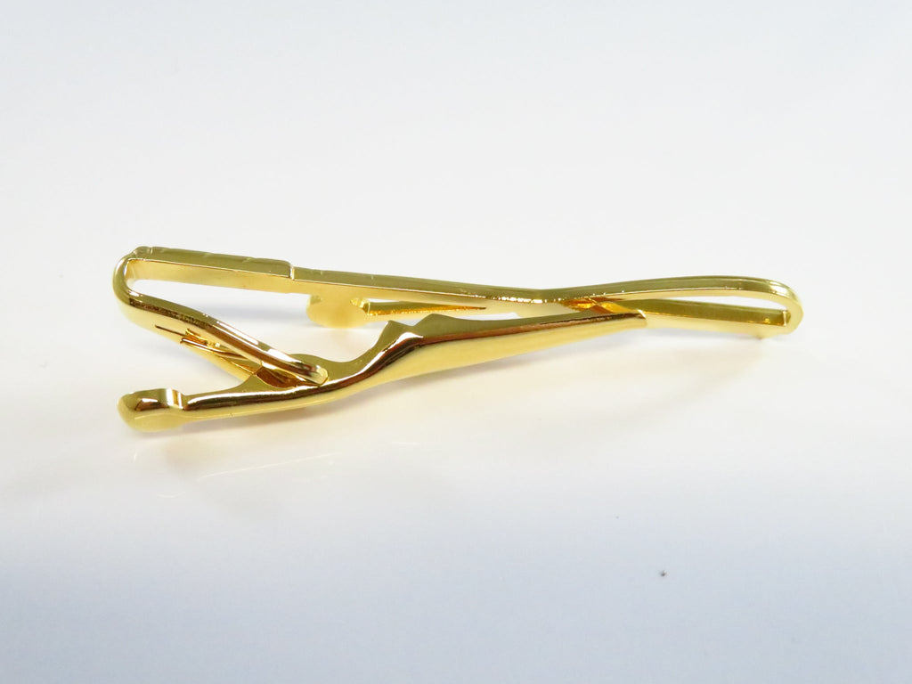 Fishing Rod & Reel Tie Bar Clip Gold Tone 2 1/2" Fish Themed Tie Clip