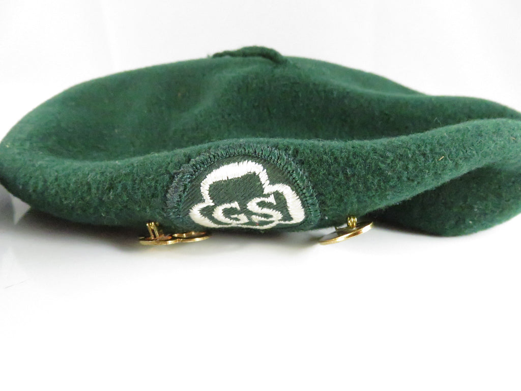 Girl Scouts green wool beret with pins & matching green knee socks set, Medium 00-1447, American Mayfair