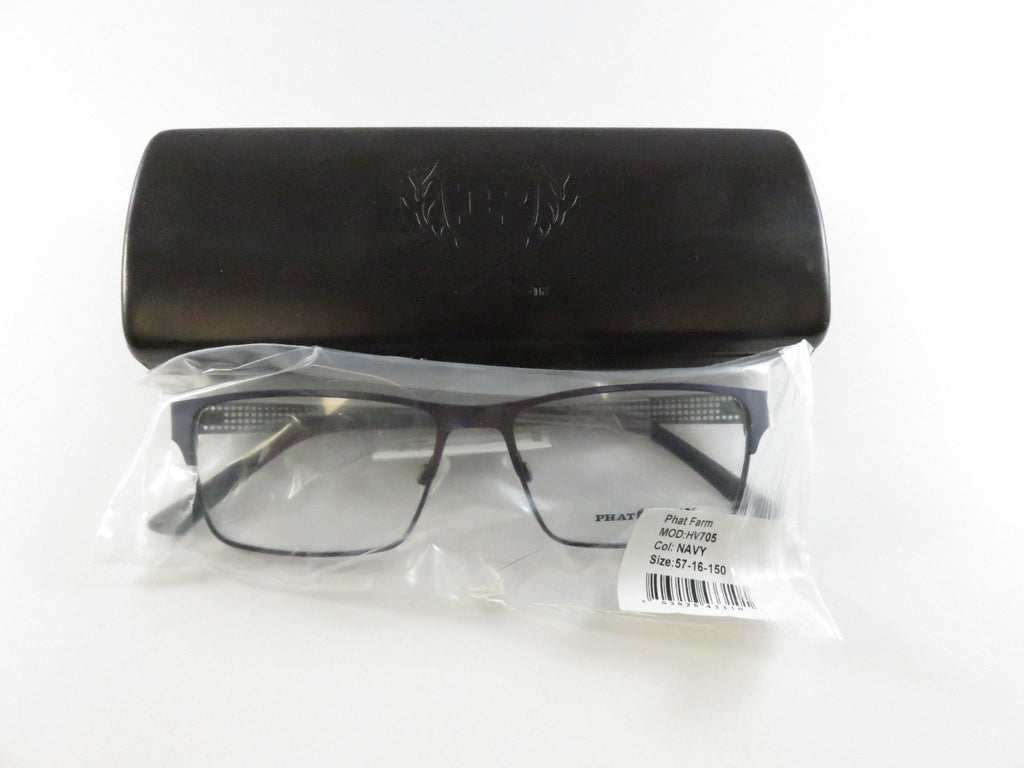 Phat Farm HV705 Navy Eyeglass Frames Men's Rectangle 57-16-150 with Case
