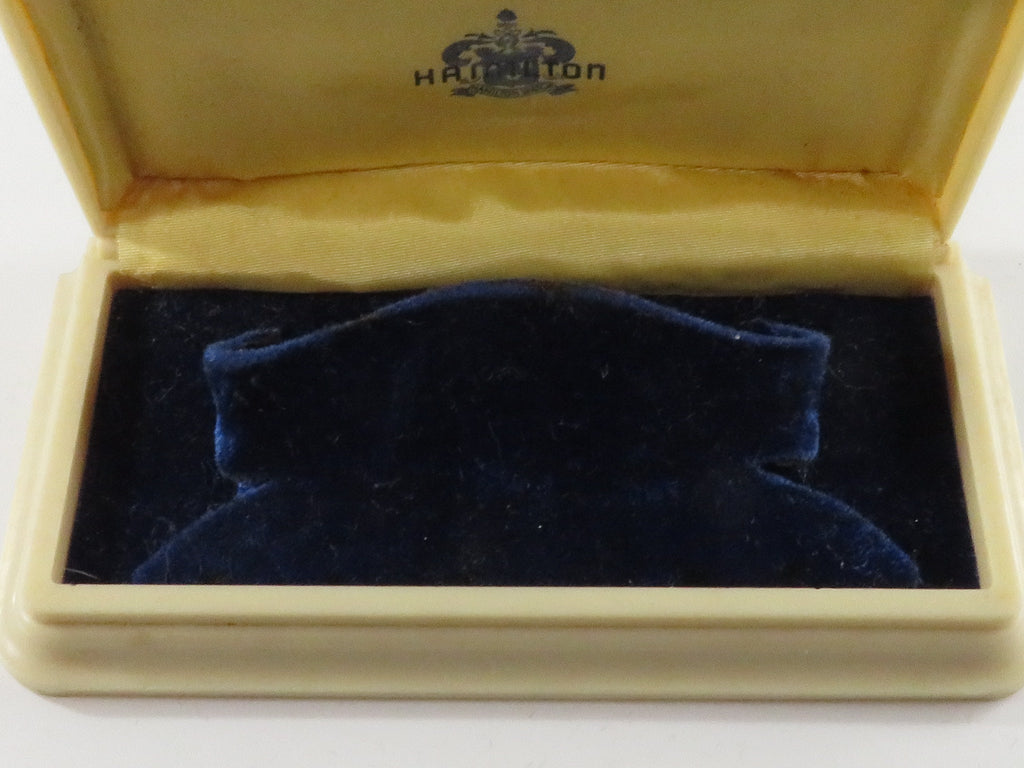Antique Hamilton Watch Co Celluloid Art Deco Watch Box Display Case Blue Velvet