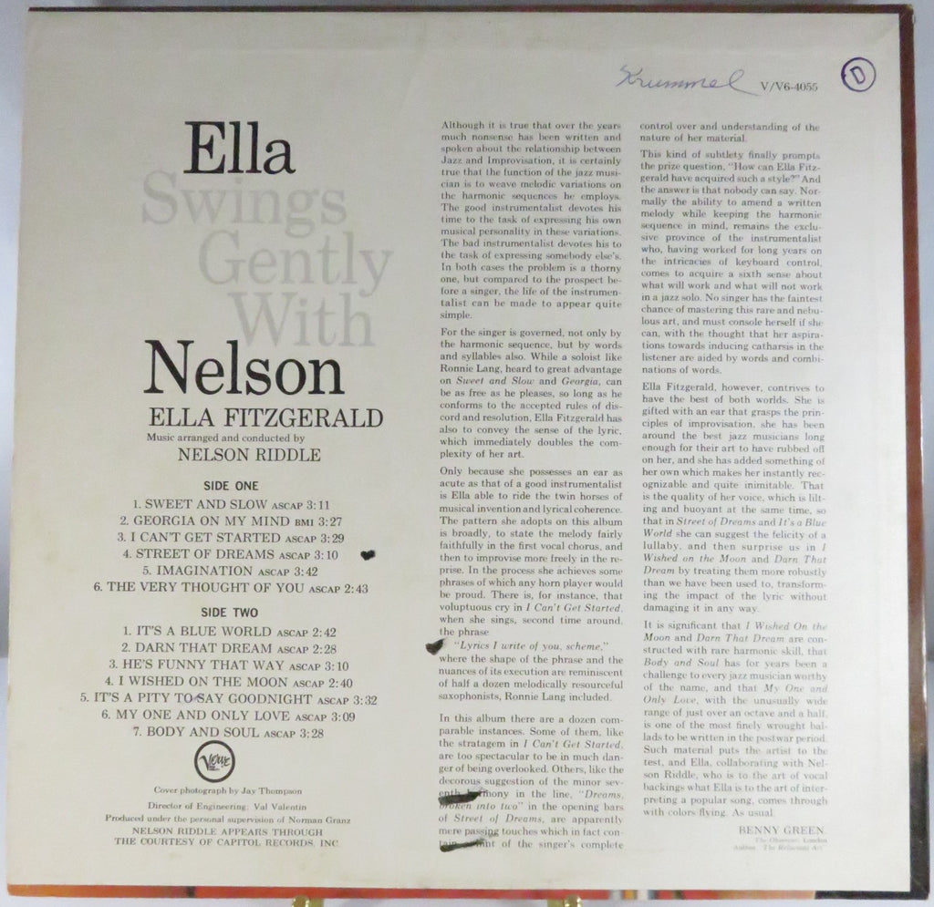 Ella Fitzgerald Ella Swings Gently With Nelson V 4055 Mono LP 1962 Jazz Vocal Album Vinyl Record