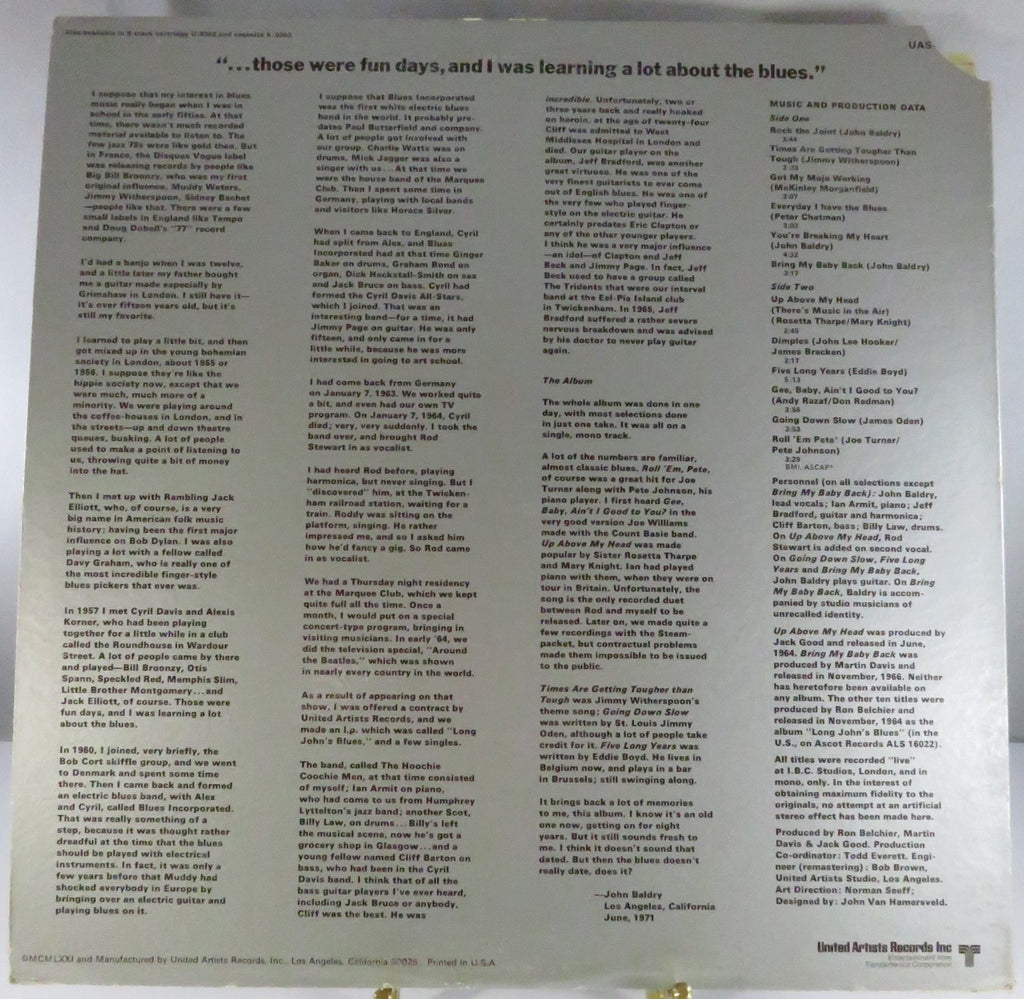 Long John Baldry Long John's Blues Gatefold Mono Remastered UAS 5543 All Disc Pressing LP Blues 1971