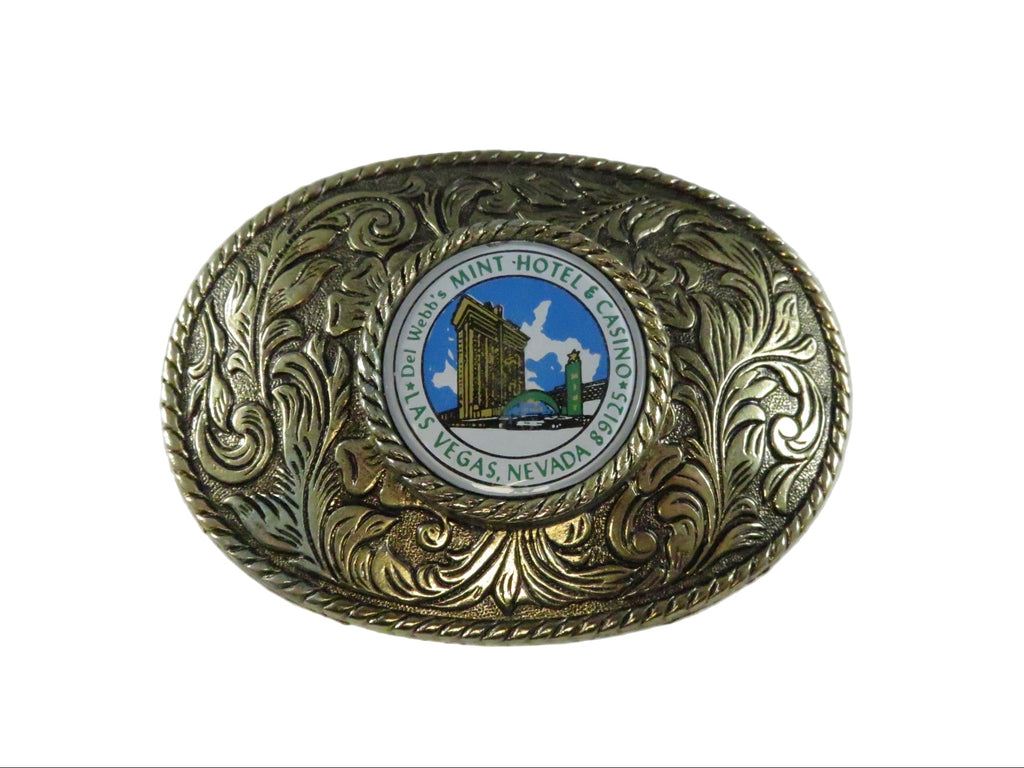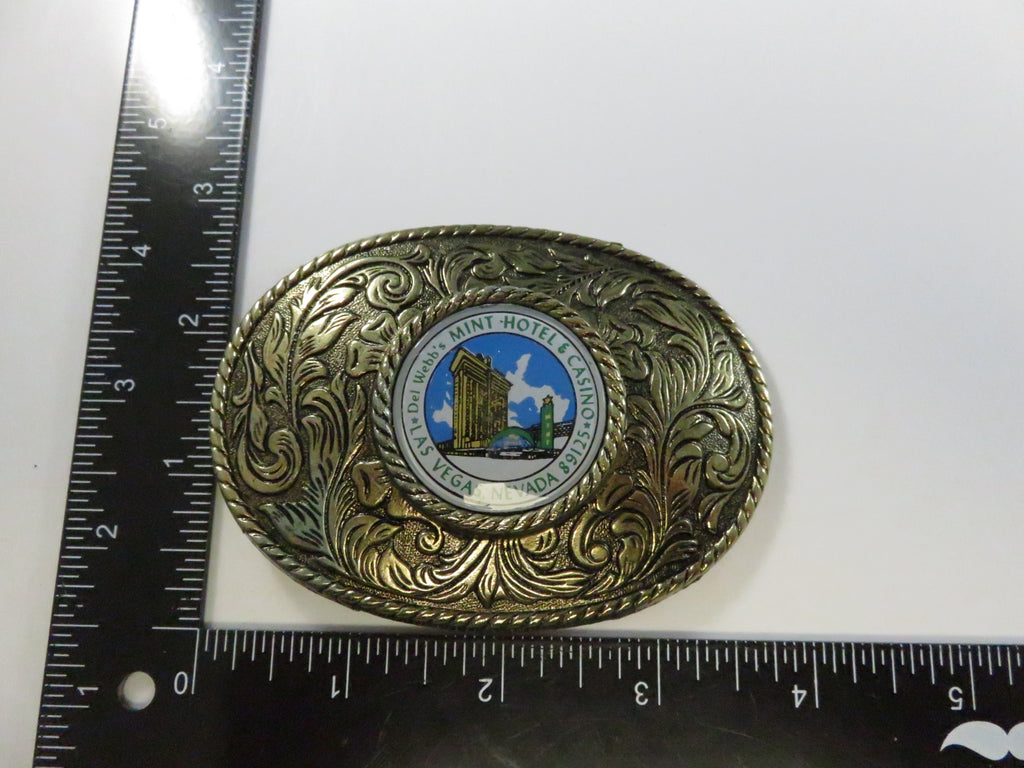 Vintage Del Webb’s Mint Hotel & Casino Las Vegas Belt Buckle Gold Tone Oval