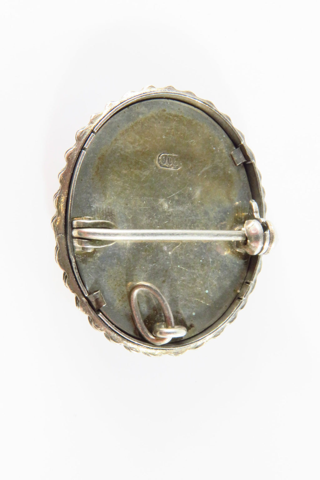Antique Hand Painted Miniature Of Woman Signed LG 800 Silver Pendant Brooch