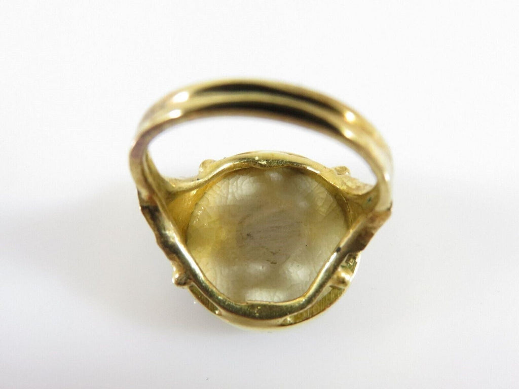 Antique Style Japanese Satsuma Iris Flower Ring Gilt Sterling Size 6.5