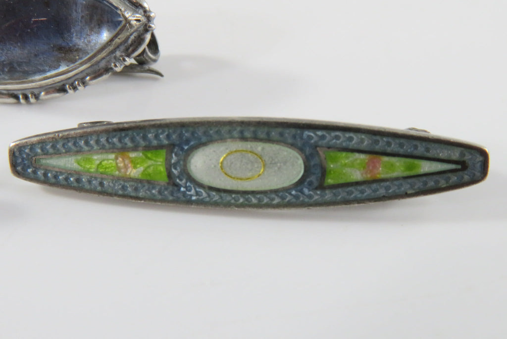 Grouping of 3 Sterling Silver Pins 2 Enamel Beauty Pin 1 Bubble Glass Pin