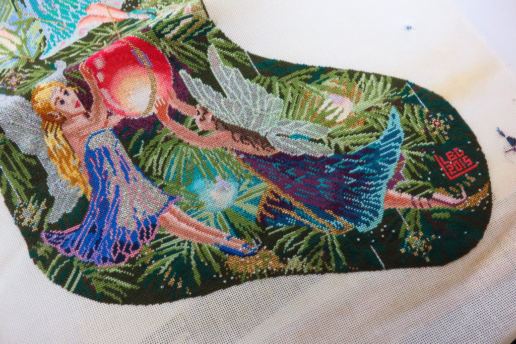 Christmas Fairies Needlepoint Stocking For Completion Approx 21" High