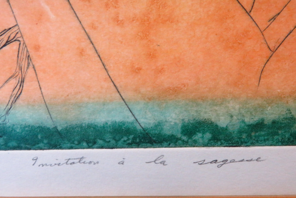 David Silverberg Artist Proof Invitation a la Sagesse Colored Engraving 20 1/4"