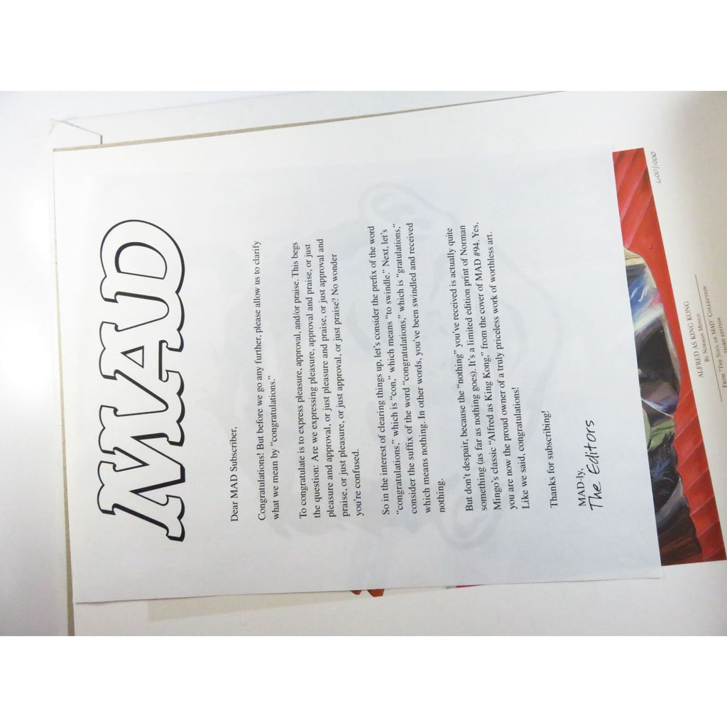 Mad Magazine Alfred As King Kong Limited Edition Third Series Print 600/1000 14" x 11" Rare Art Poster
