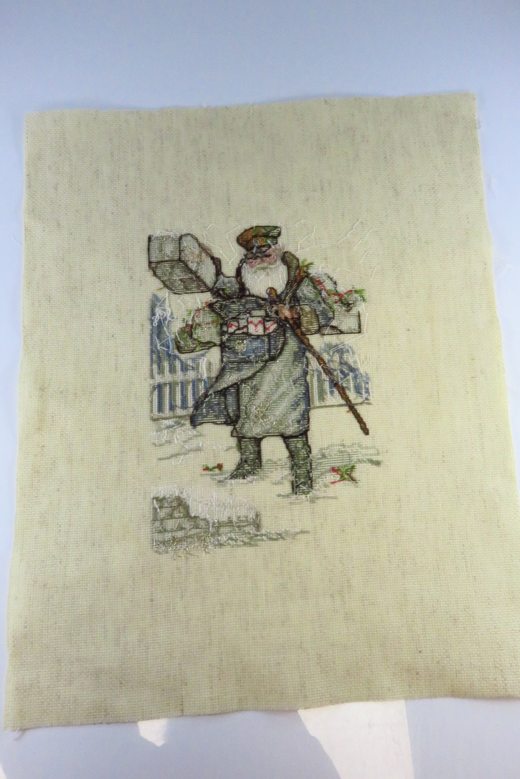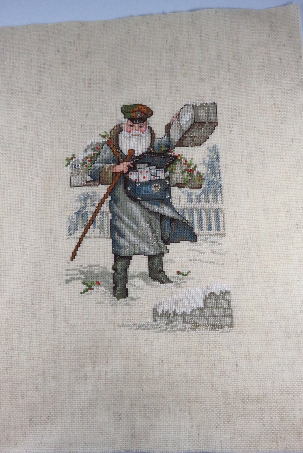 Medium Completed Old Father Christmas Victorian Style Needlepoint Canvas