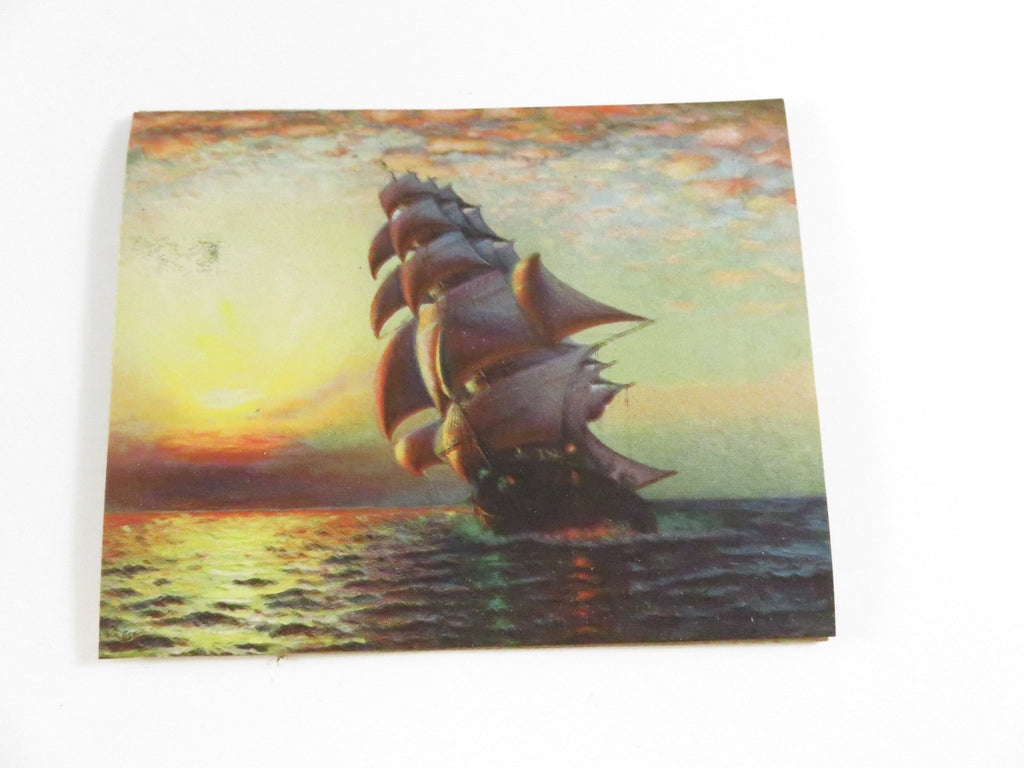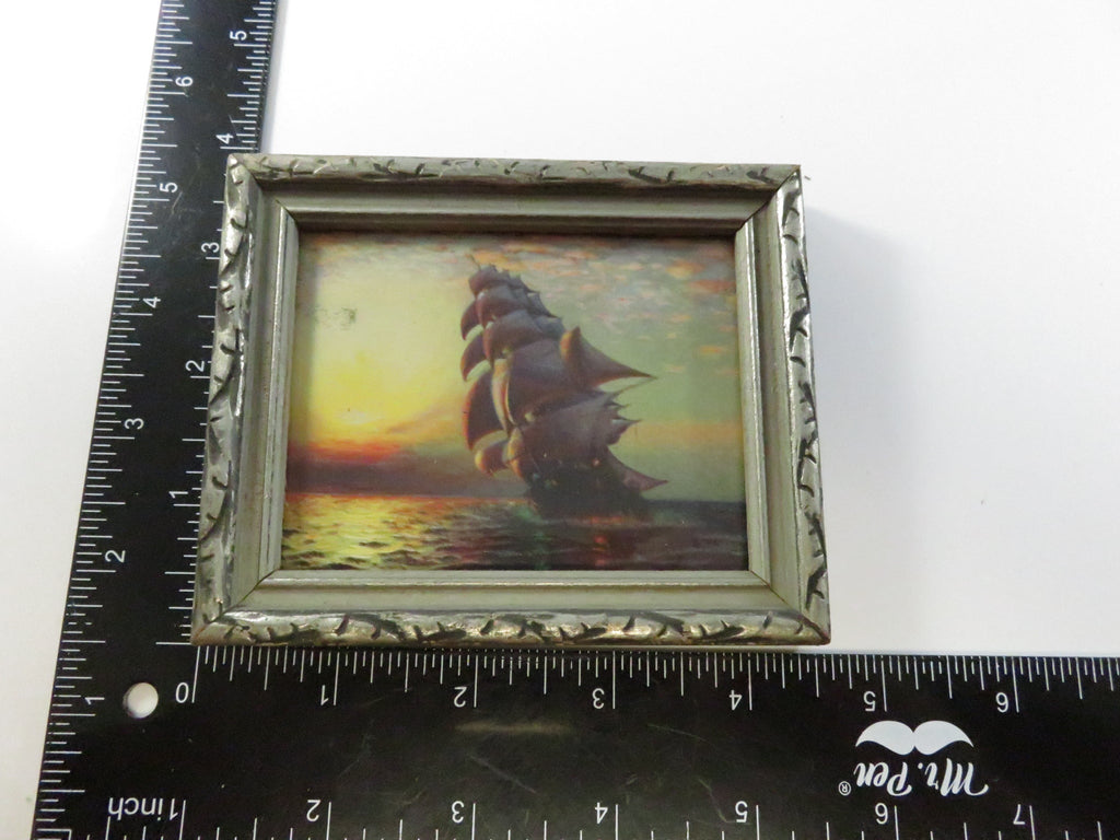 Red Sails at Sunset by Francis Augustus Silva Miniature Chromolithograph in Antique Frame