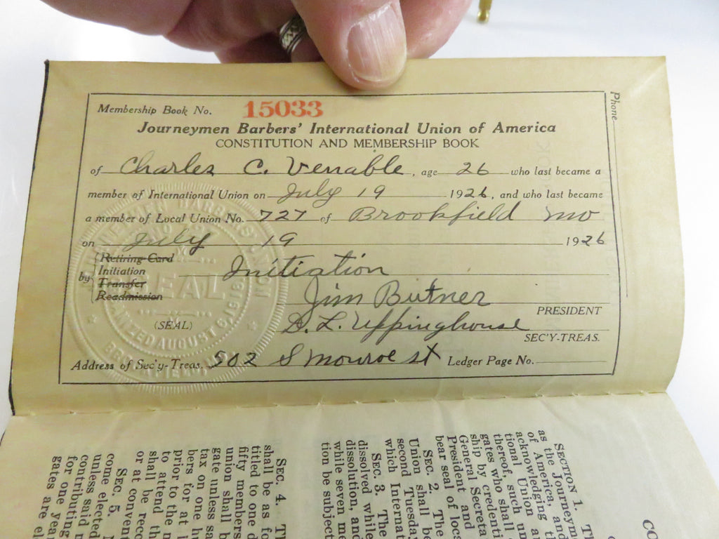 Journeymen Barbers’ International Union of America 1924 Constitution and Membership Book Antique 50pp