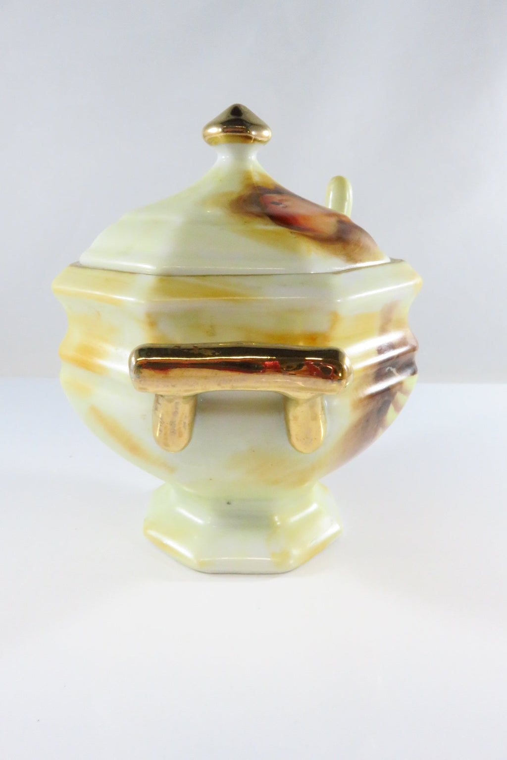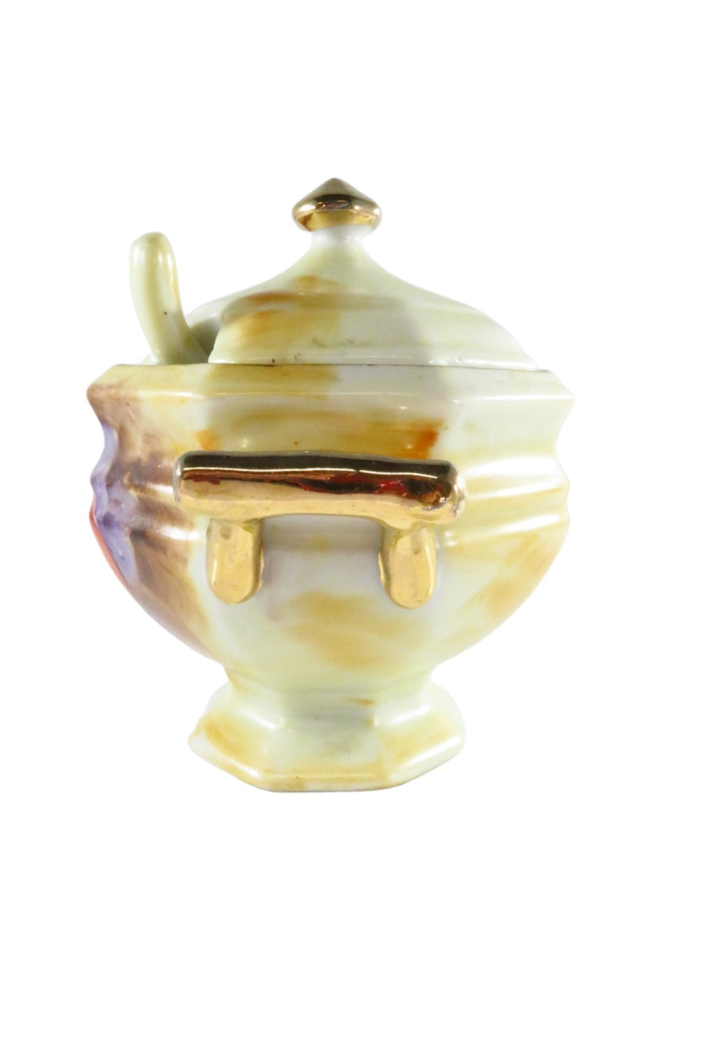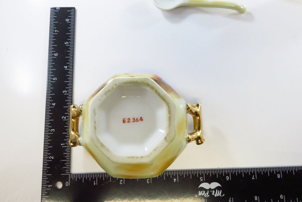 Enesco Sugar Condiment Bowl with Lid Spoon E2364 Apple Grape Fruit Scene