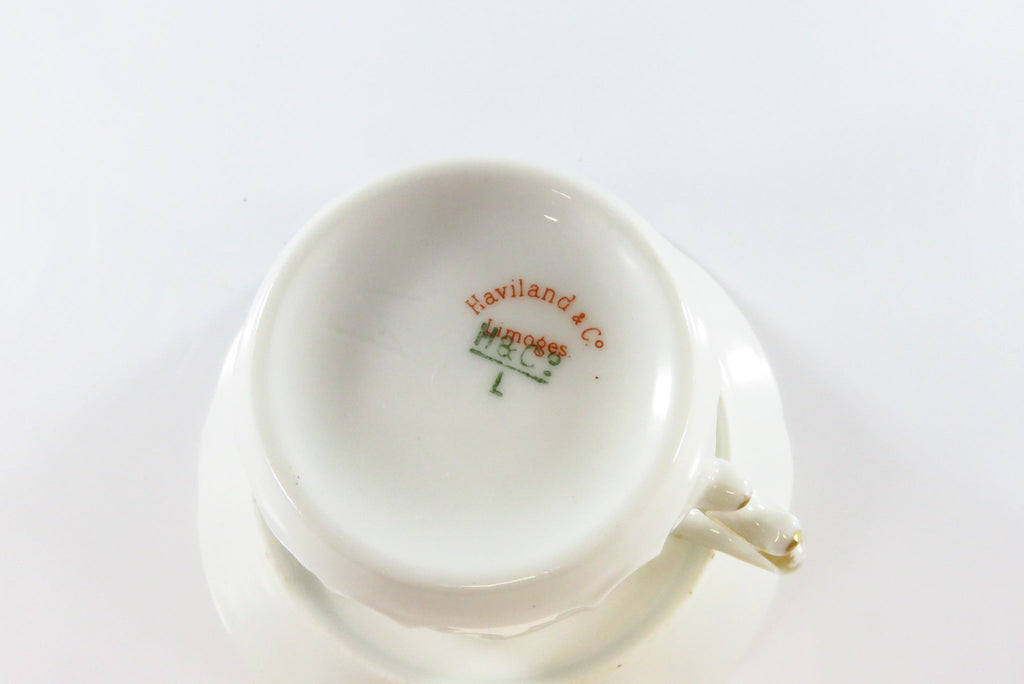 Haviland & Co Limoges France Small Tea Cup and Saucer With Flowers