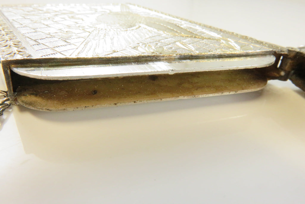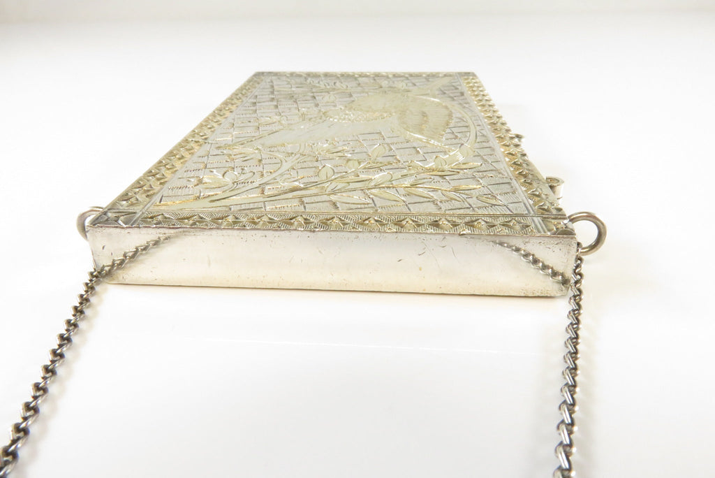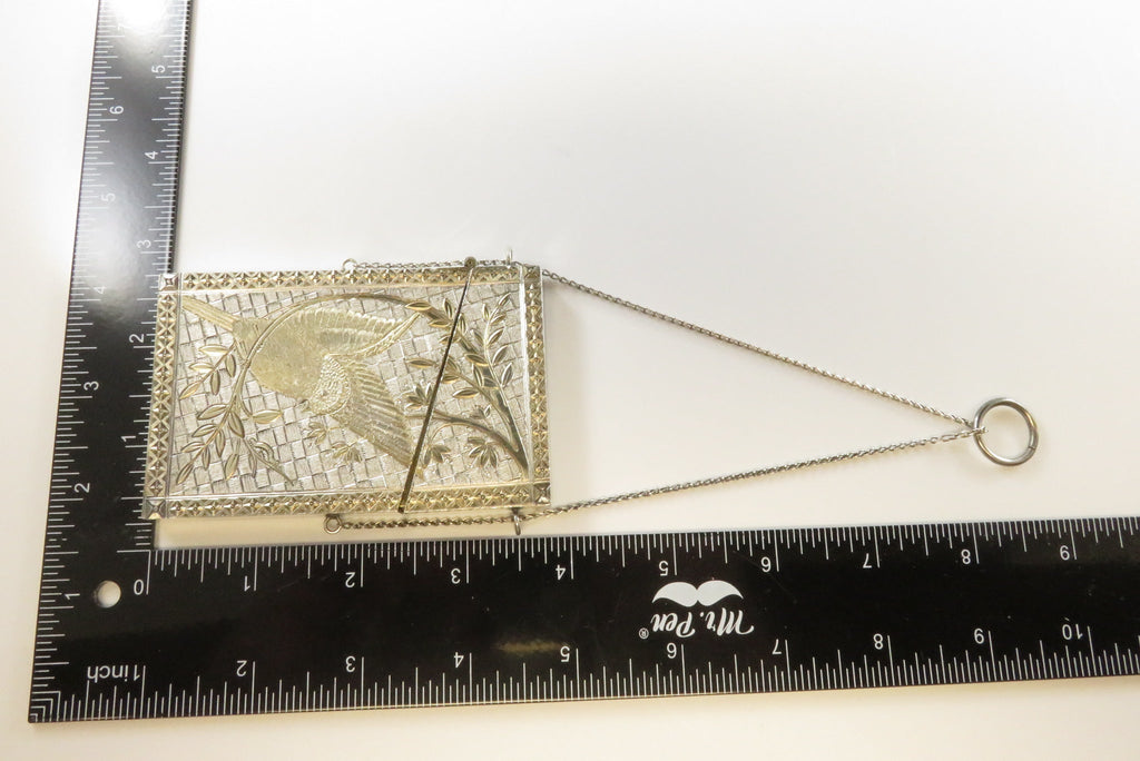 Antique Silver Metal Gold Accented Edwardian Calling Card Chatelaine Case