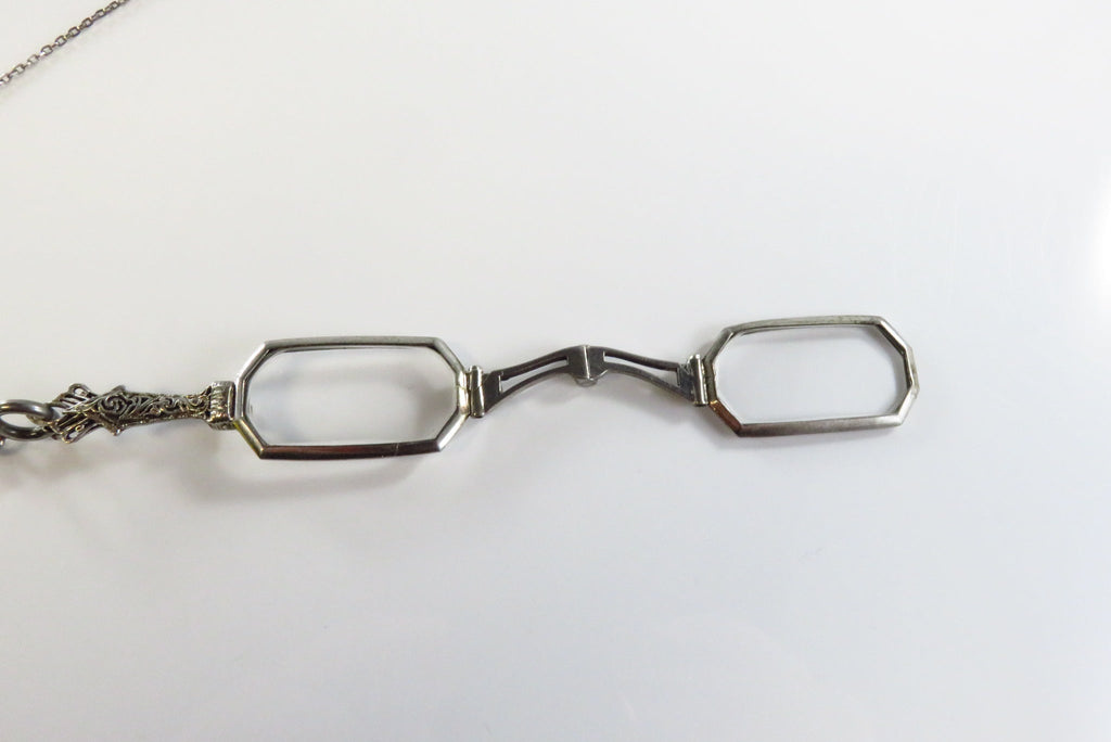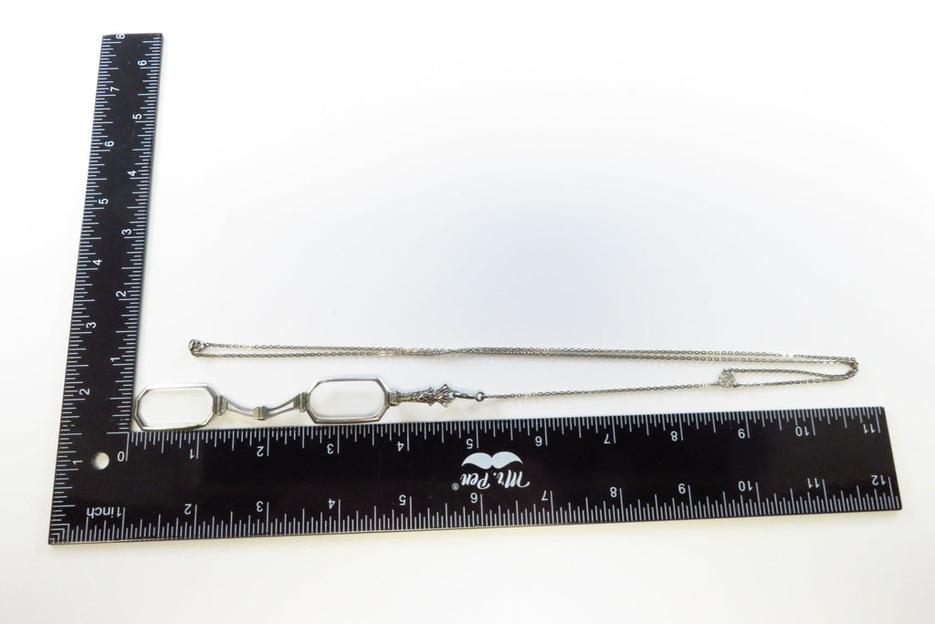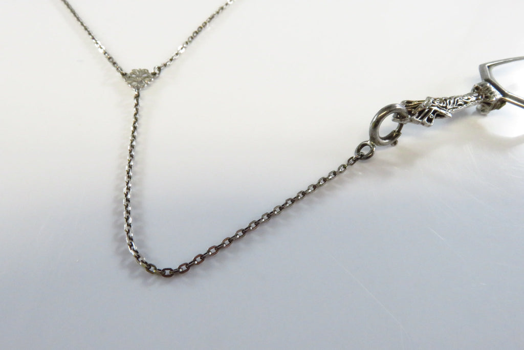 Art Deco 25" Sterling Lariat Necklace with Antique Folding Lorgnette Spectacles