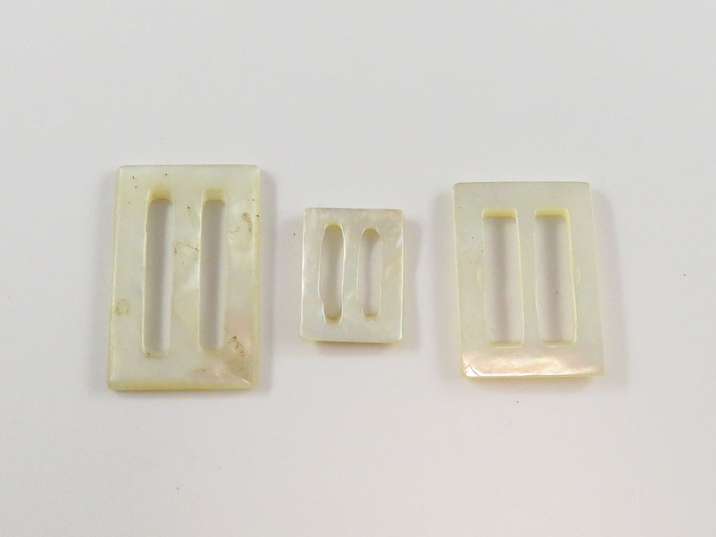 Collection of 3 Carved Shell Shoe Buckles Victorian Style Mother of Pearl
