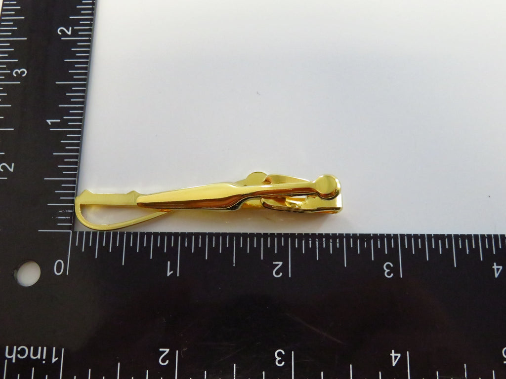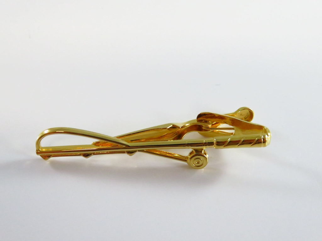 Fishing Rod & Reel Tie Bar Clip Gold Tone 2 1/2" Fish Themed Tie Clip
