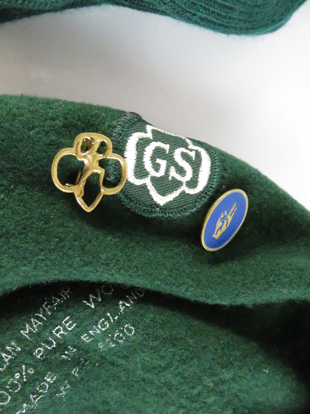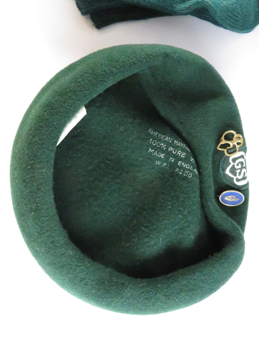 Girl Scouts green wool beret with pins & matching green knee socks set, Medium 00-1447, American Mayfair