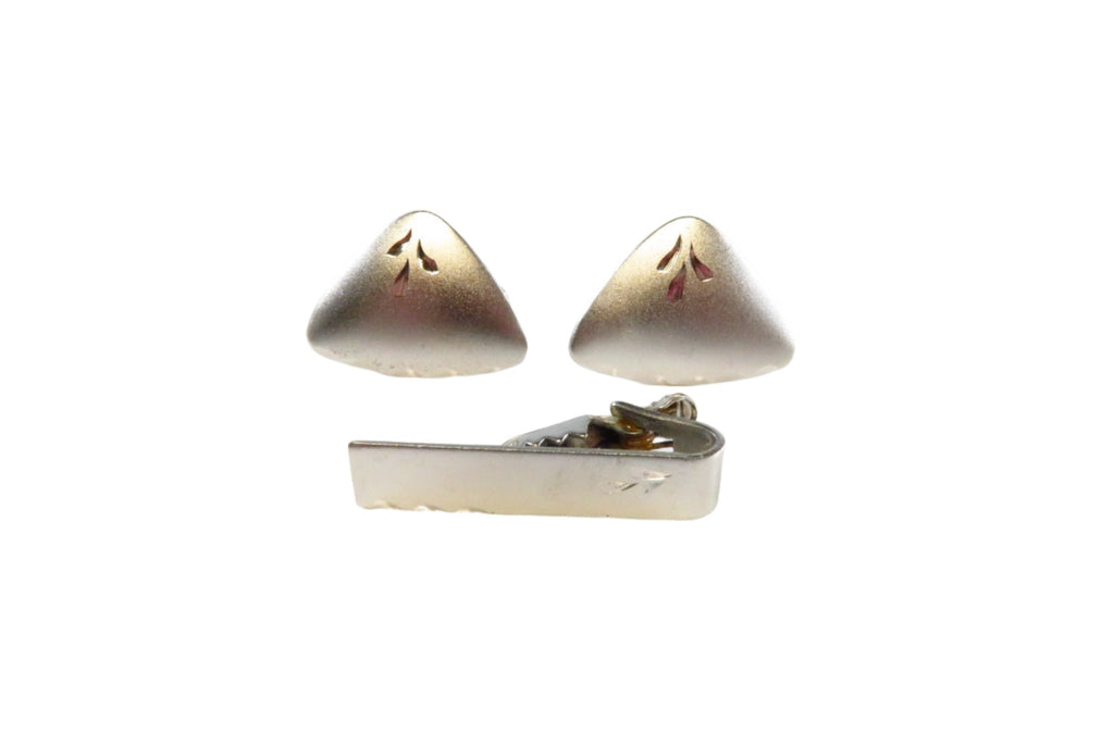 Rhodium over Sterling No Polish Sterling Silver Cufflink & Tie Bar Clip Set