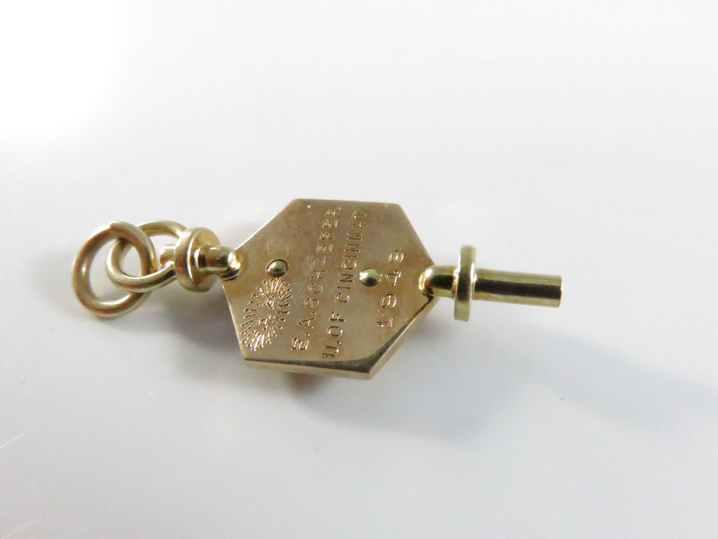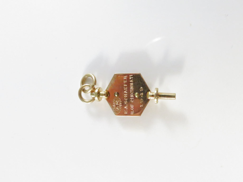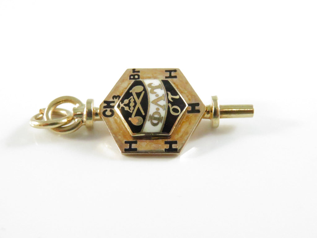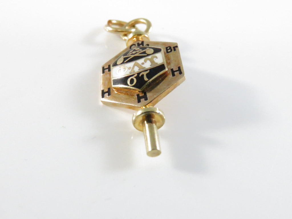 10K Gold 1949 Phi Lambda Upsilon Chemistry Honor Society Key Charm - Univ. of Cincinnati - 1 1/8"