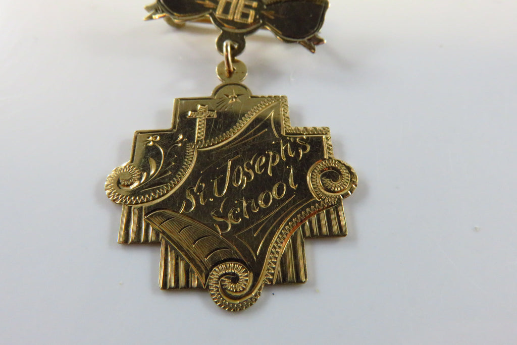 1906 St. Joseph’s School Edwardian Academic Award Medal in Solid 10K Yellow Gold with Pin Bar