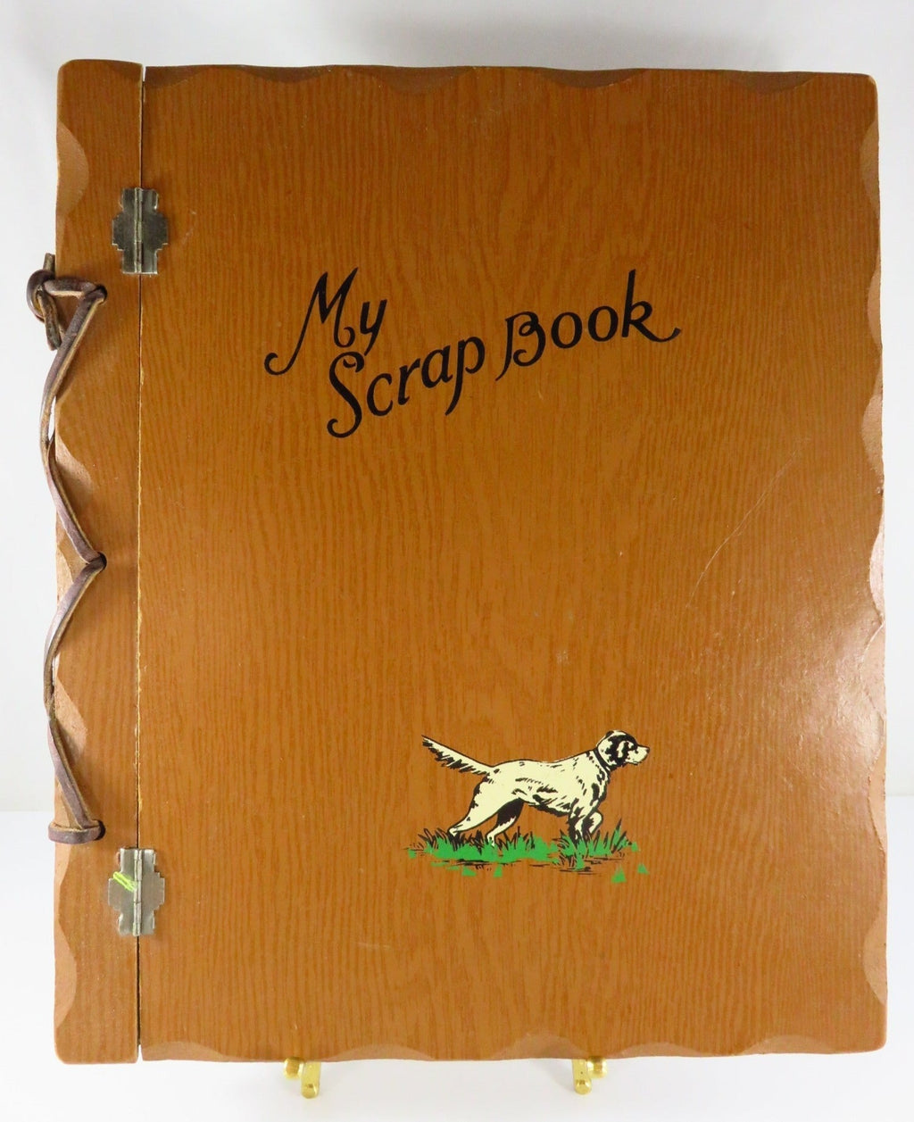1940's "My Scrap Book" 10"x12" Leather Wrapped Spine Faux Wood Covers