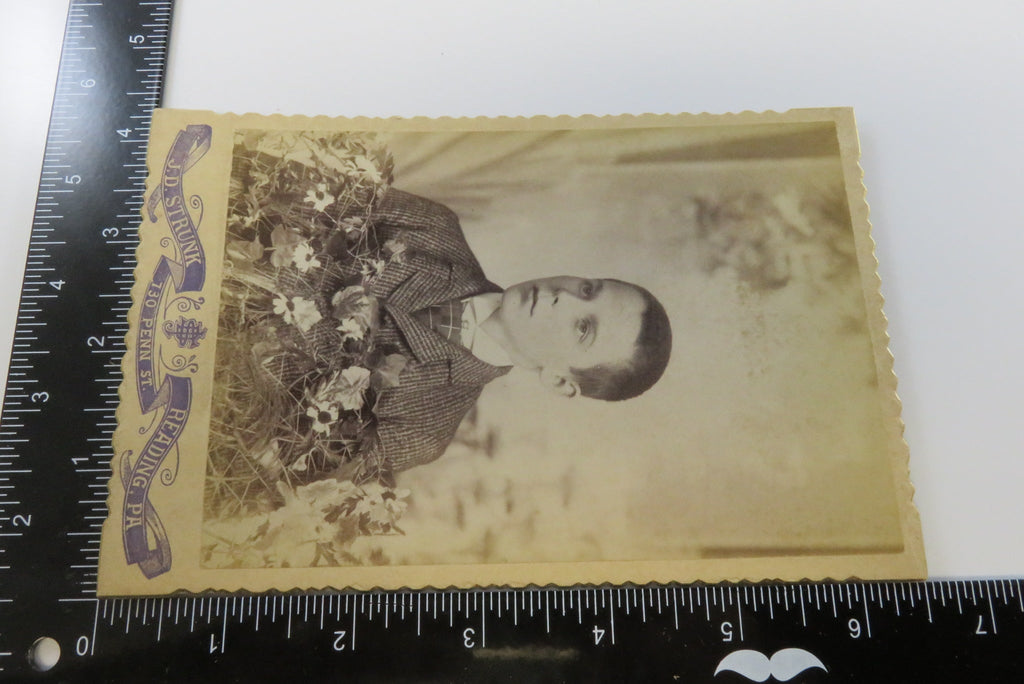 Antique Mourning Cabinet Card Young Man in Flower Netting J.D. Strunk Reading PA