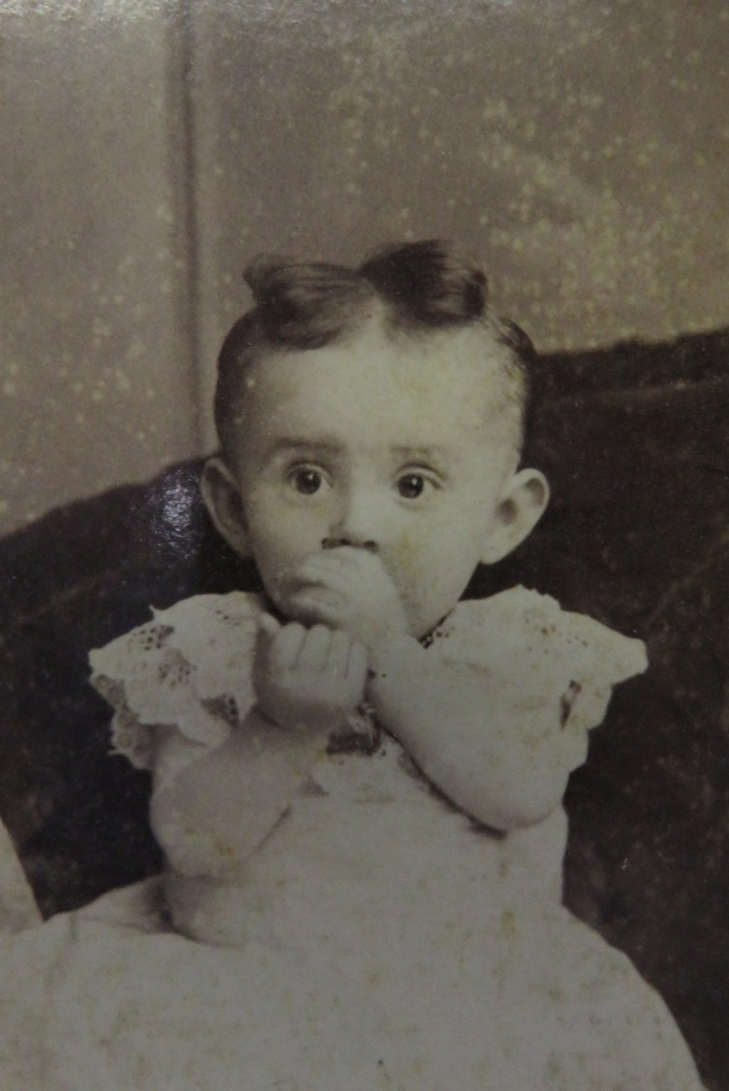 Baby on Couch hands to face Mom Hand Antique Cabinet Card Fritz Reading PA