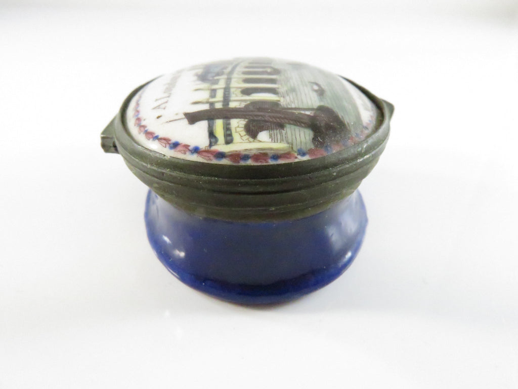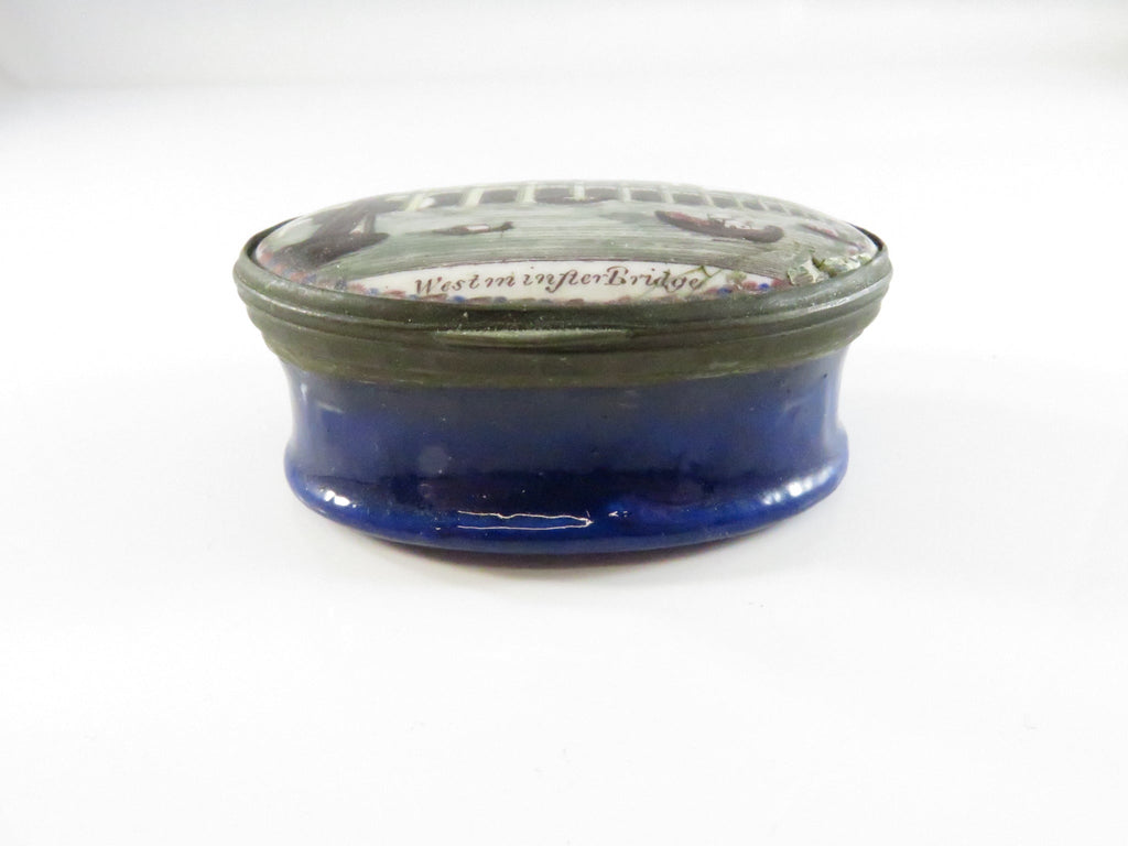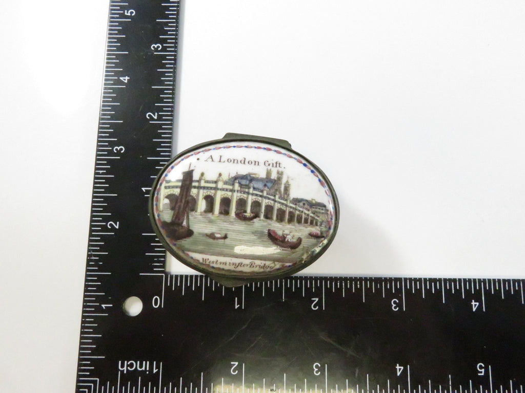 c1780 George III Enamel Patch Box - "A London Gift" Westminster Bridge - Rare