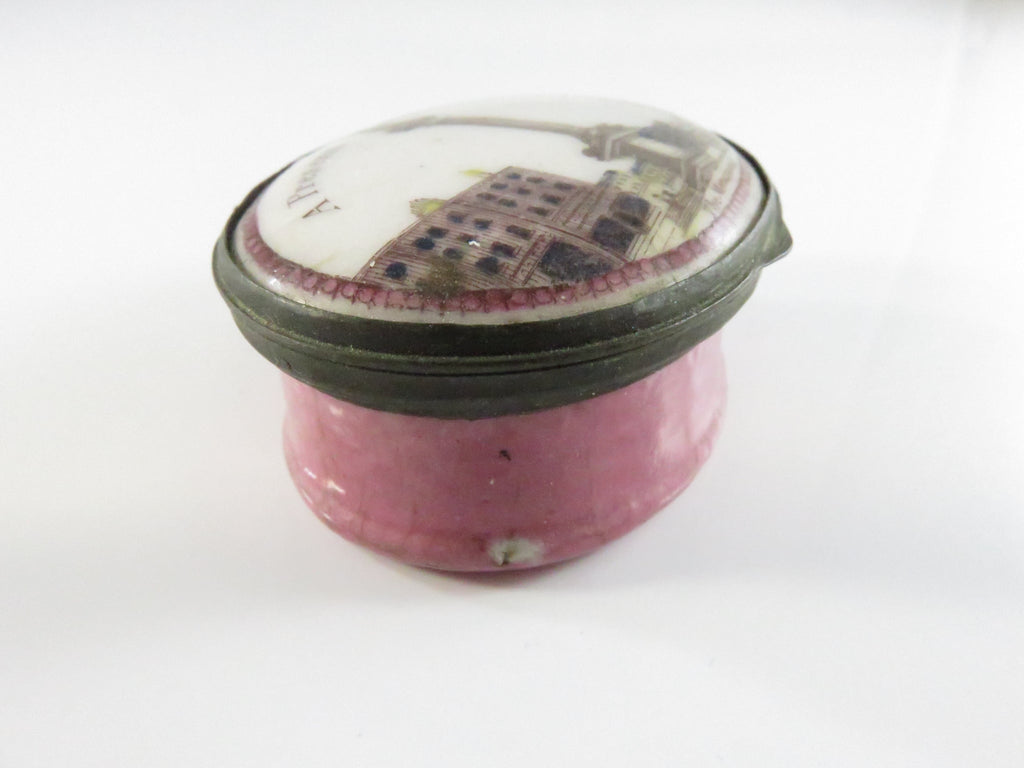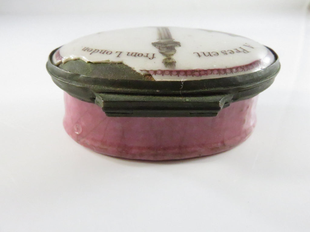 c1780 Georgian Enameled Patch Box - "A Present from London The Monument"