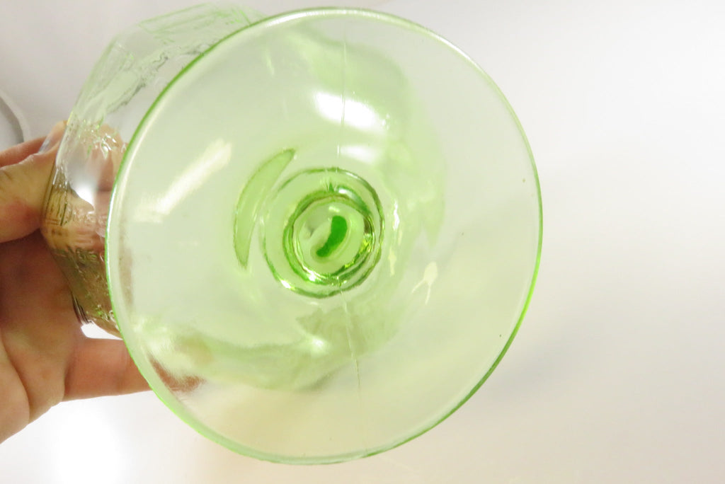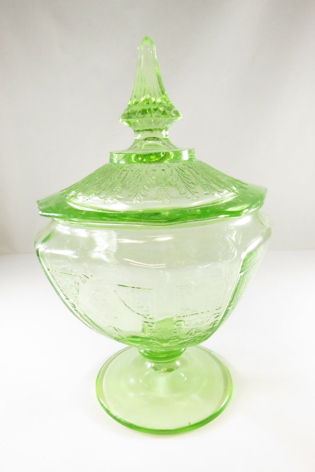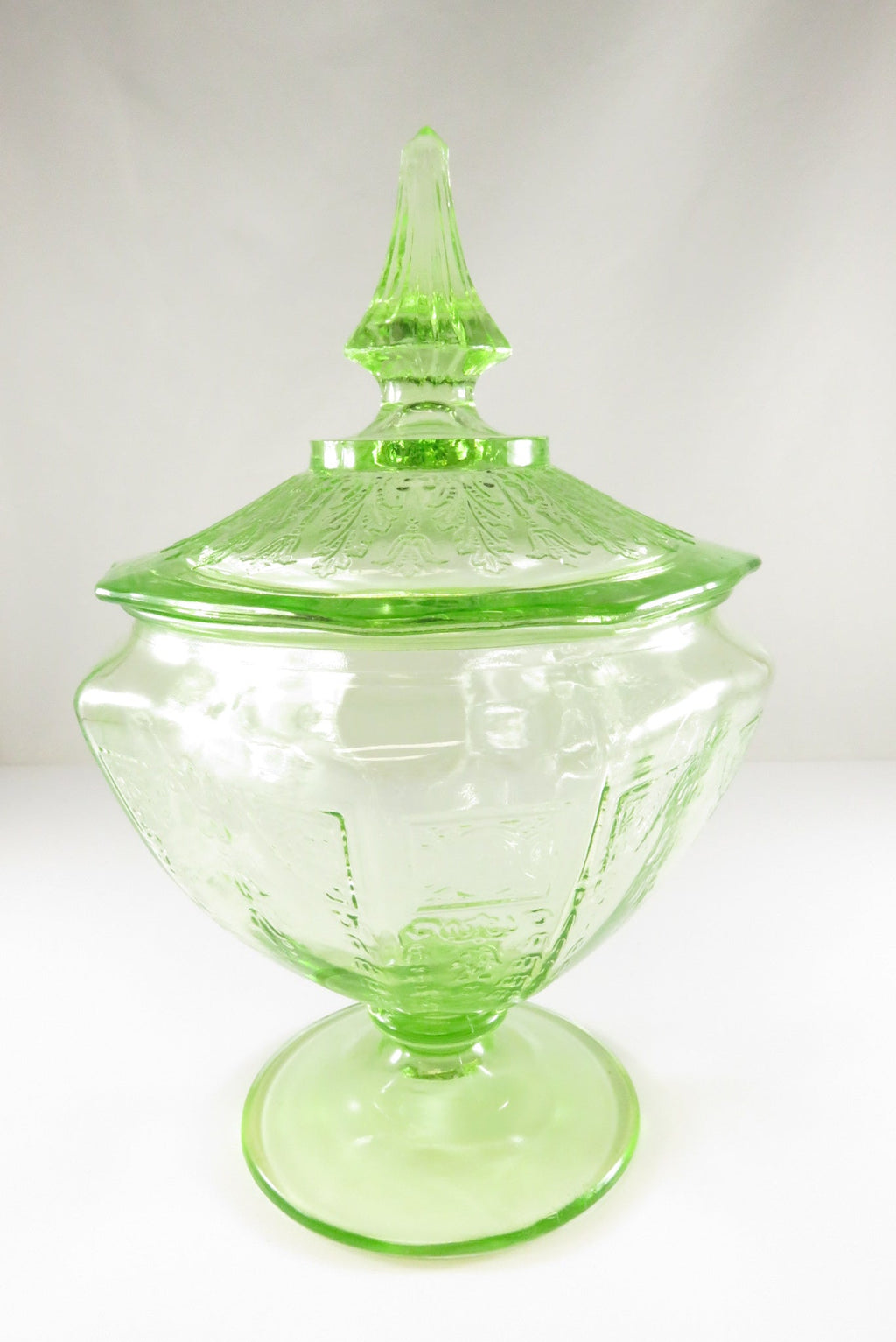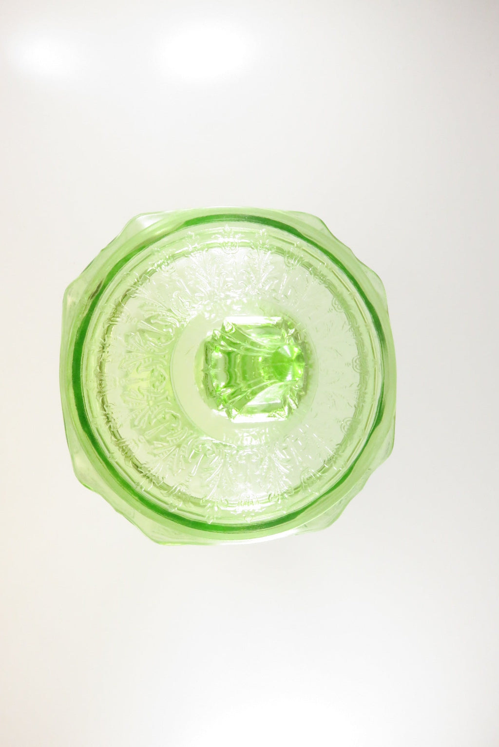 Green Vaseline Uranium Glass Covered Candy Dish Anchor Hockings Princess