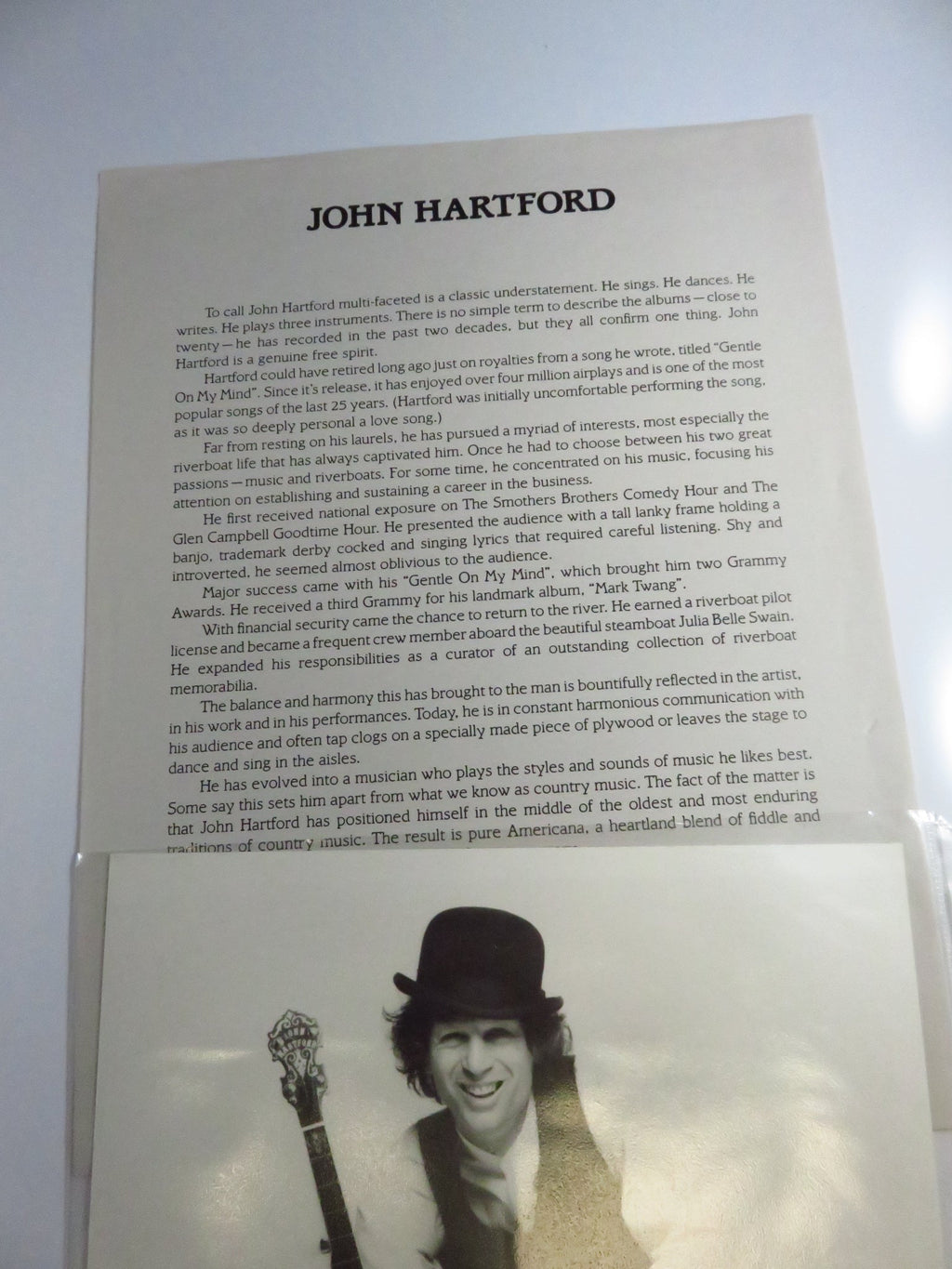 Tags: Bio sheet, Collectible photo, Dot records, Hartford mca, Iconic photo, John hartford, Mca dot, Memorabilia, Noreturn, Photo with, Press bio, Records iconic, Used, With press
