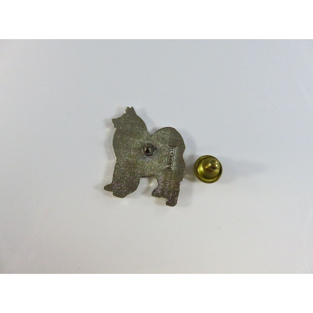 Samoyed Dog Lapel Hat Pin Silver Tone White Enamel Light Wear 1.25 Inch High Base Metal Enamel Imperfections