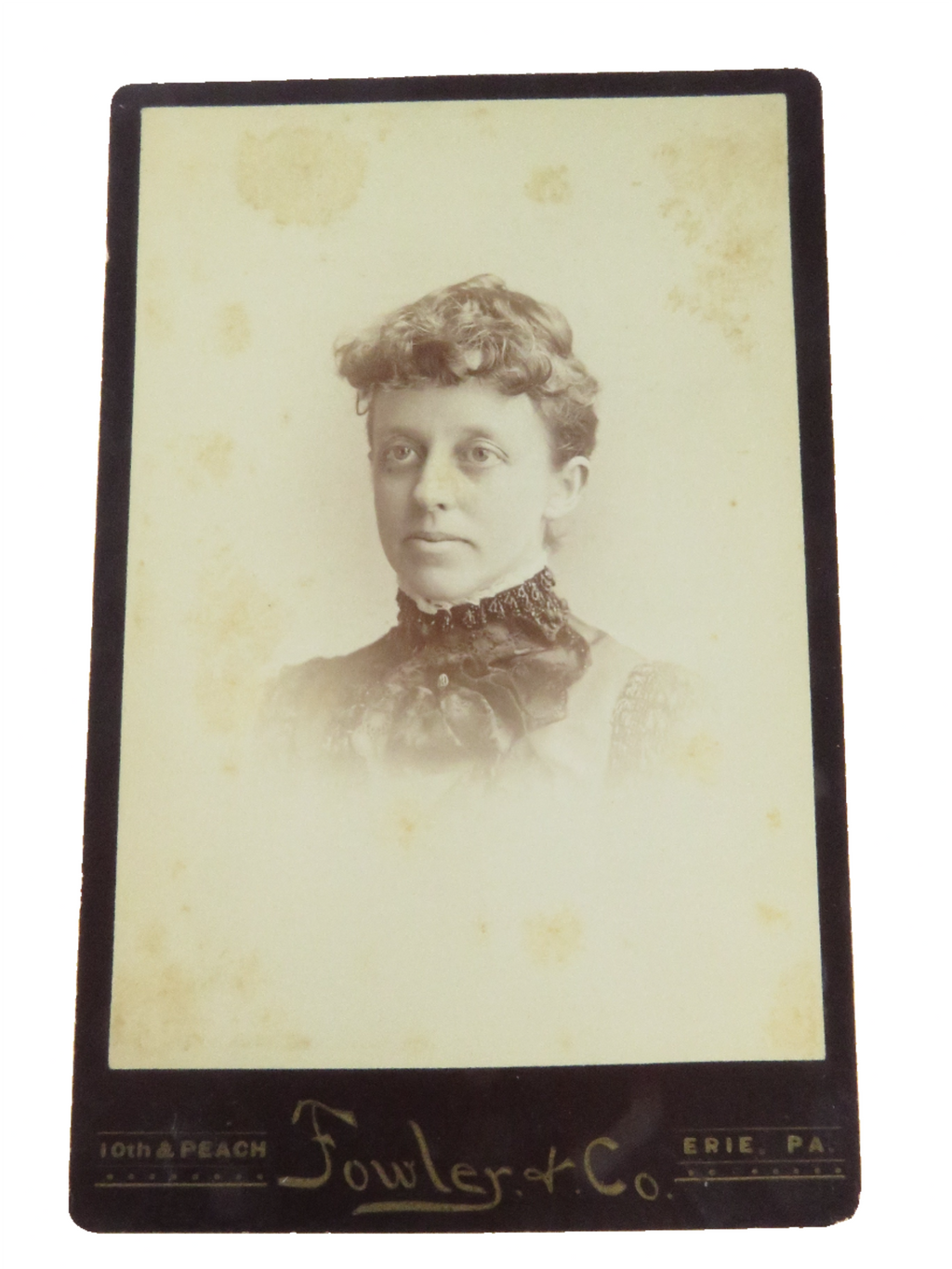 Victorian Woman in Ruffles Unnamed Sitter Fowler & Co Erie PA Antique Photograph