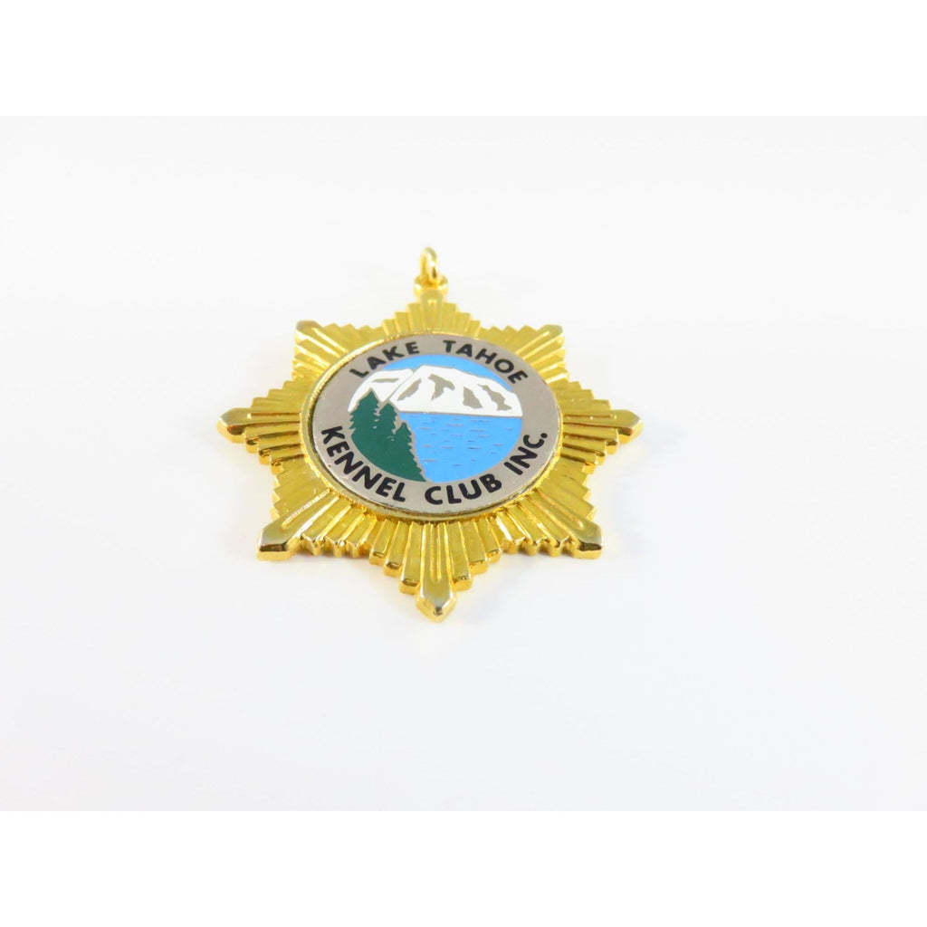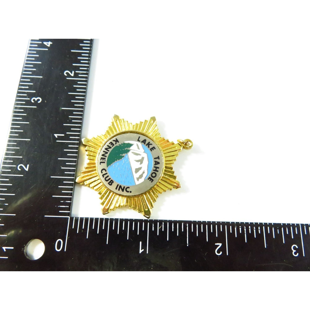 Vintage Gold Tone Lake Tahoe Kennel Club Inc. Medallion 1.5" Wide Enameled Shield Design