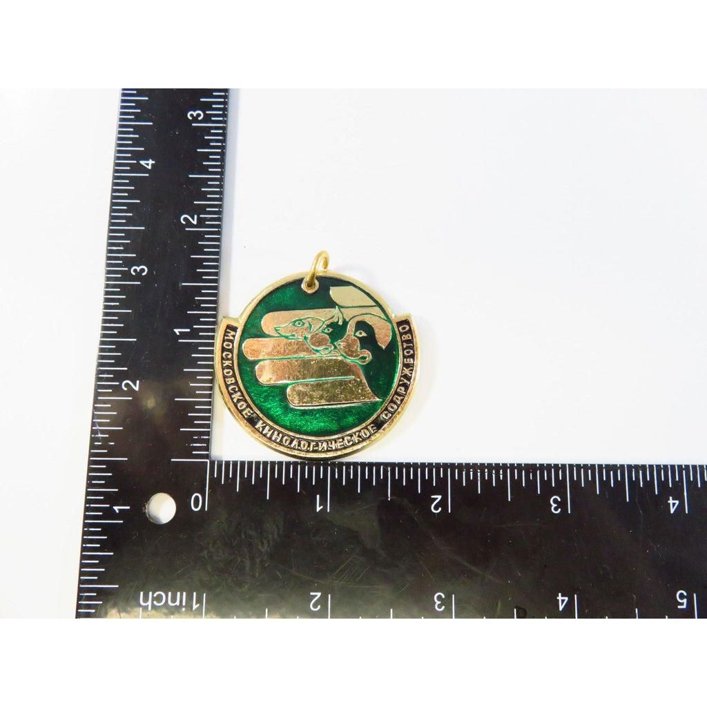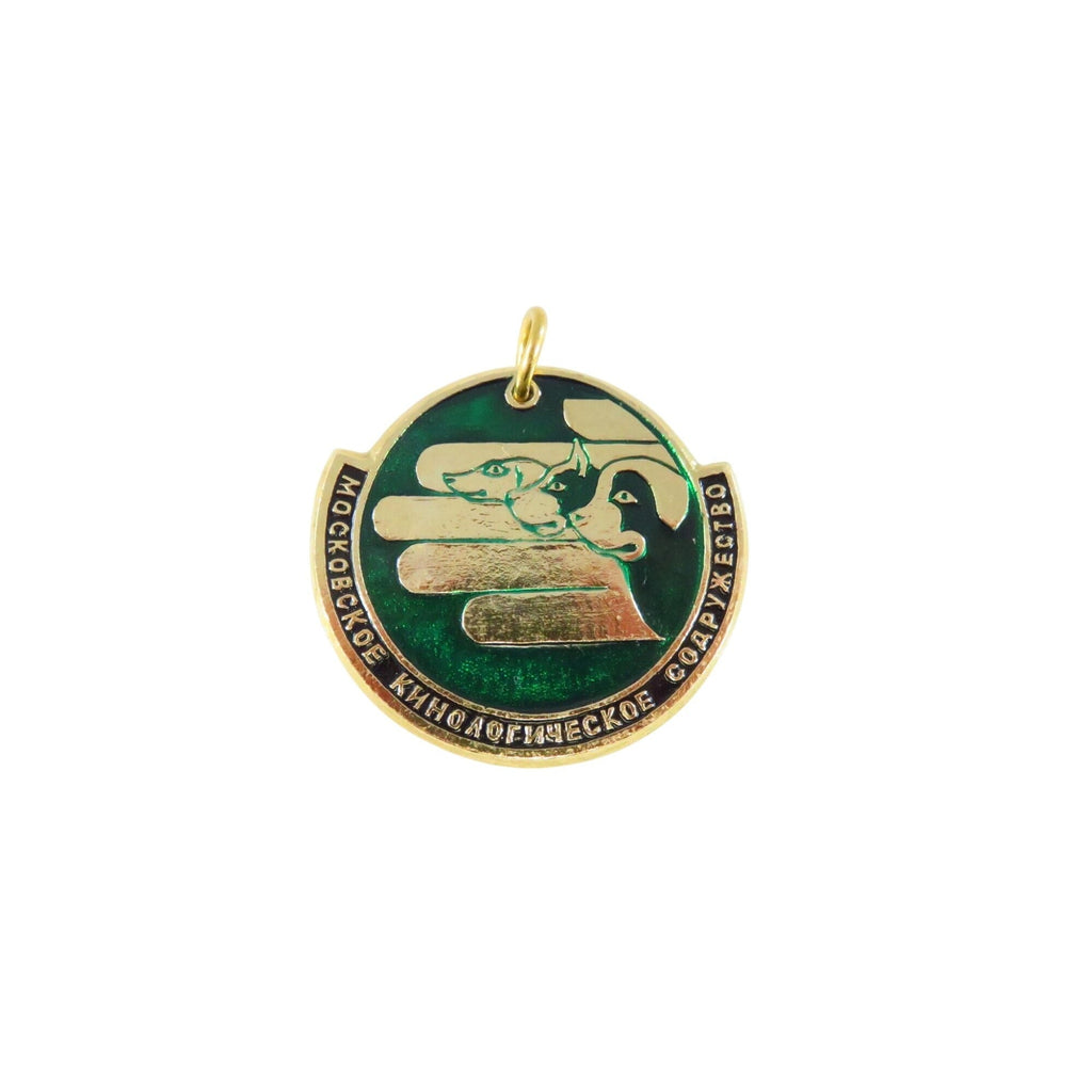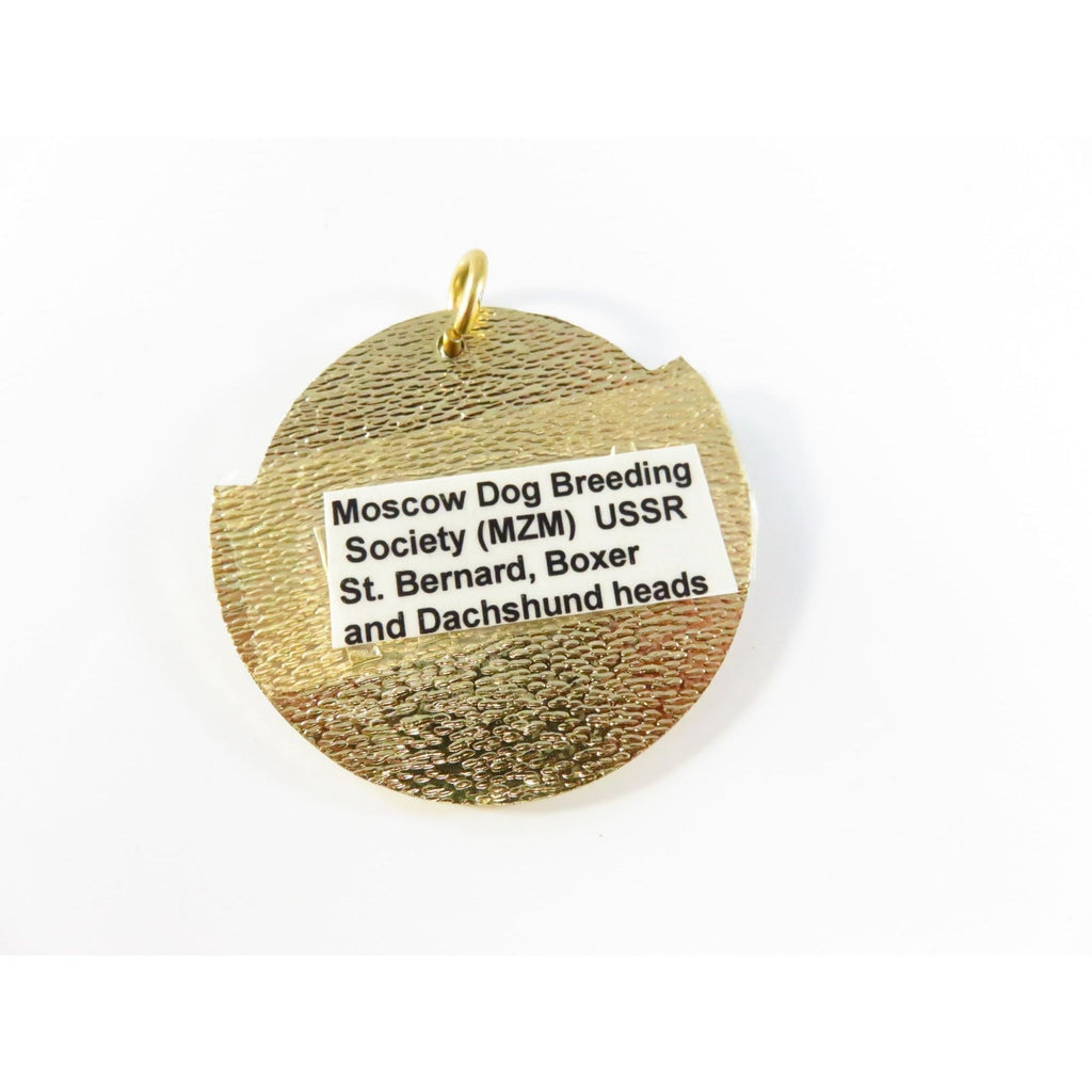 Vintage Moscow Dog Breeding Society MZM Medallion Gold Tone Green Enamel 1.75" USSR St Bernard Boxer Dachshund Heads