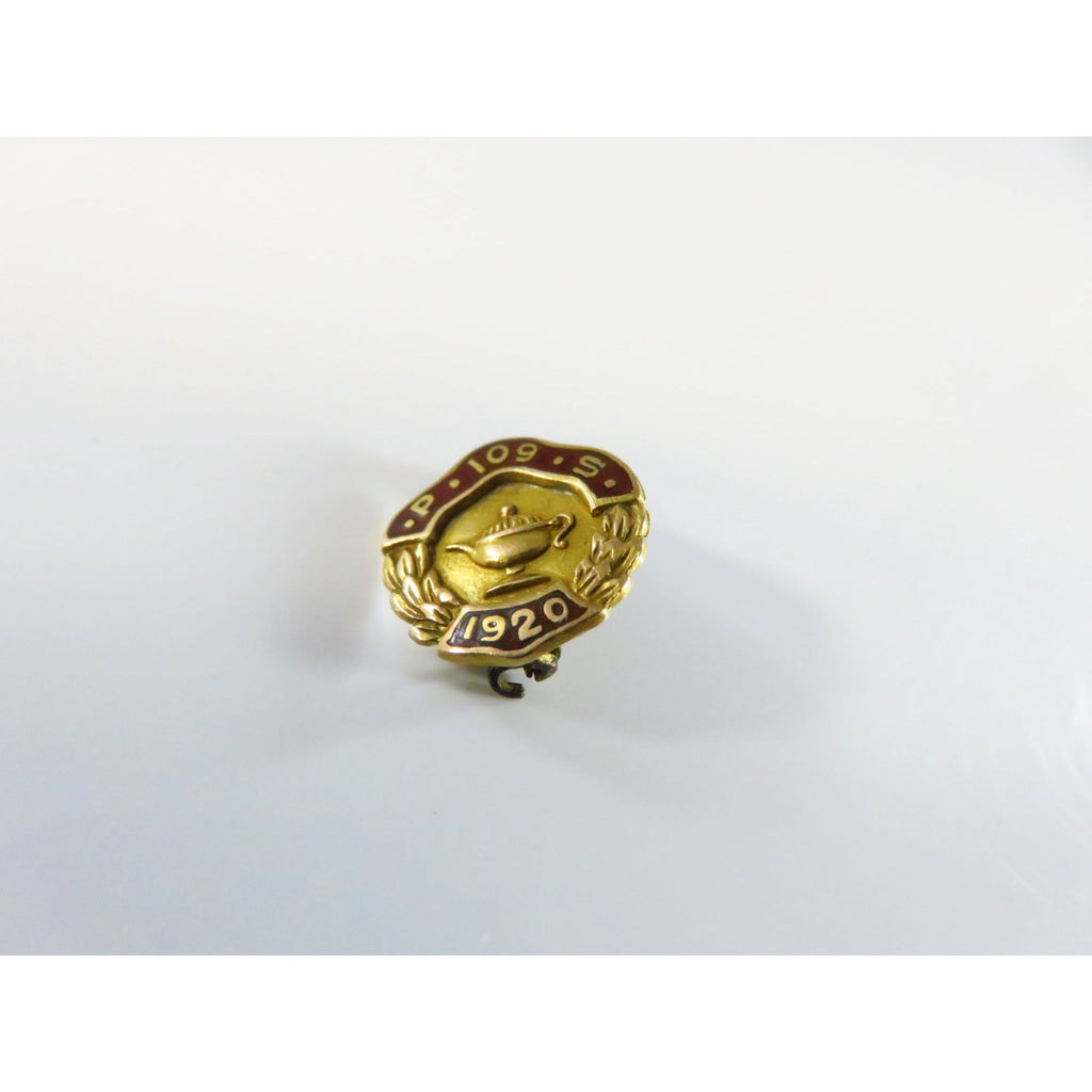 Vintage P.S. 109 School Pin 1920 Gold Tone Metal Red Enamel 1/2" Rare Collectible With Damage