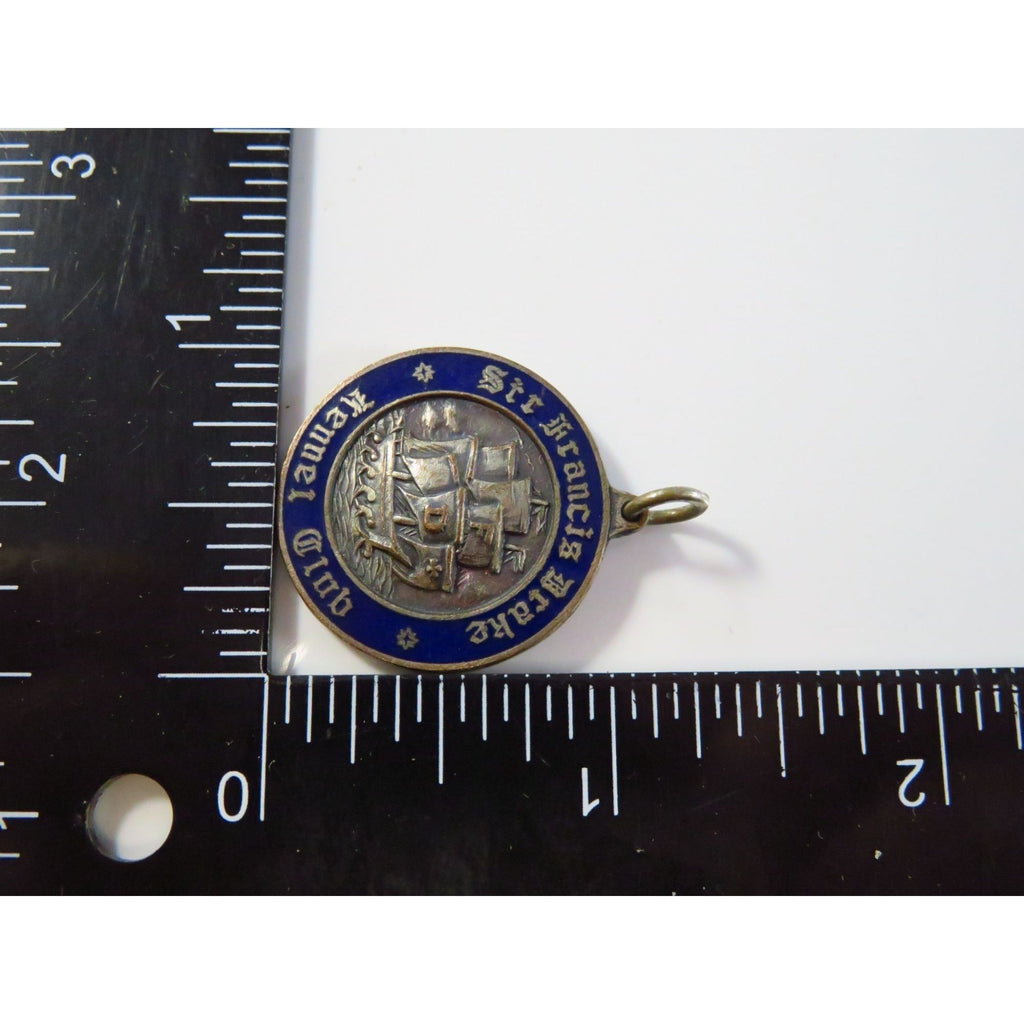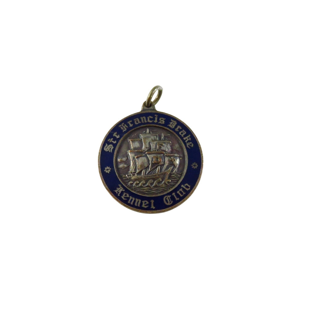 Vintage Sir Francis Drake Kennel Club Dog Show Medal Blue Enamel Silver Tone 1" Round Pendant