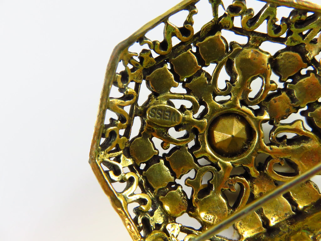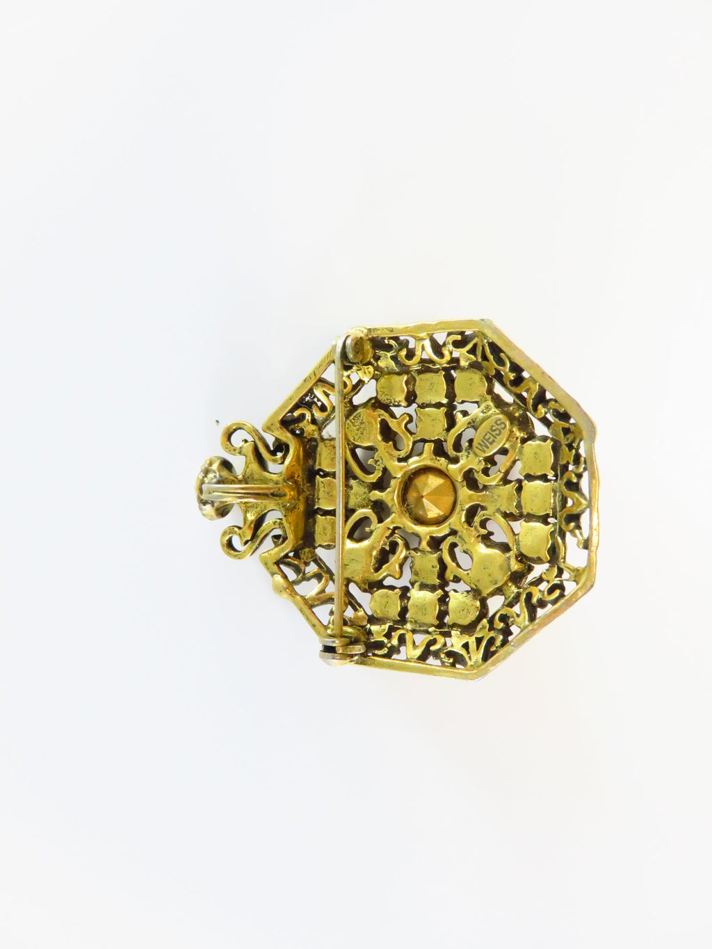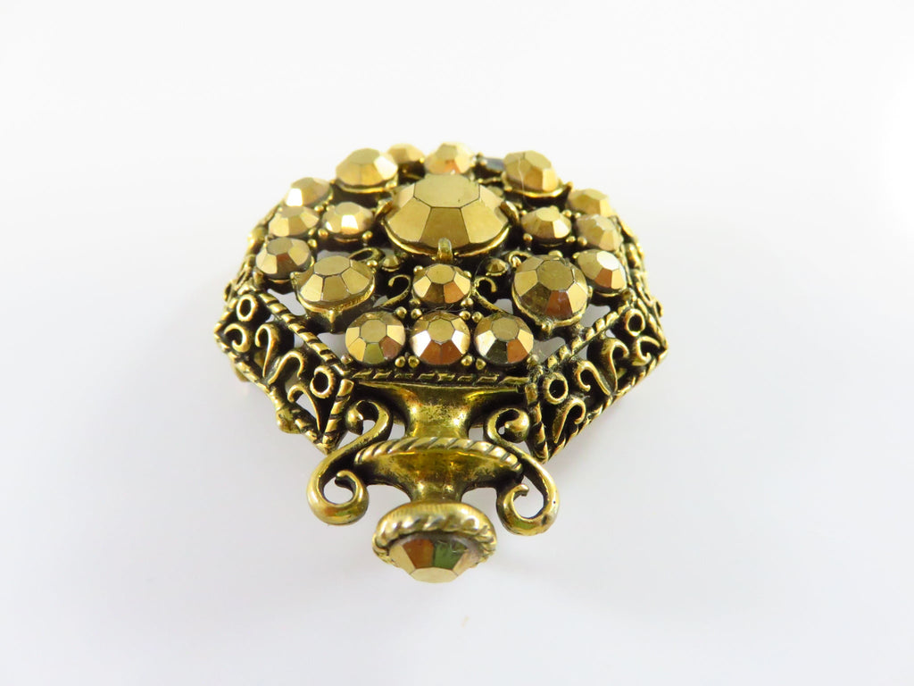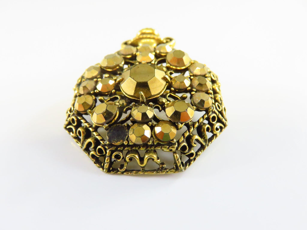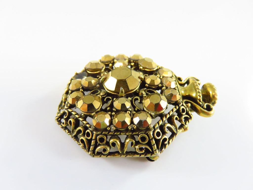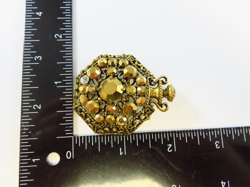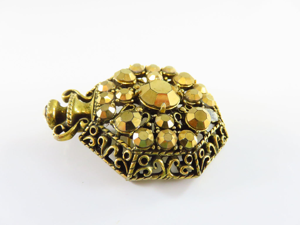 A Weiss Gold Rhinestone Sparkling Gold Tone Scent Bottle Brooch 2 1/4"