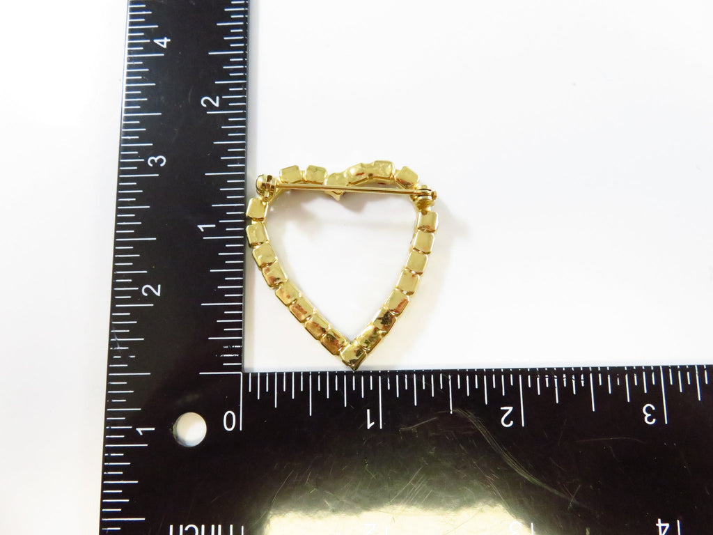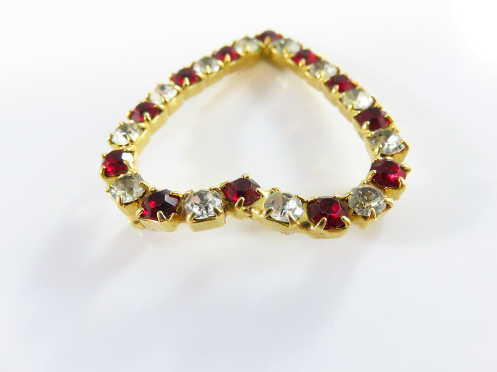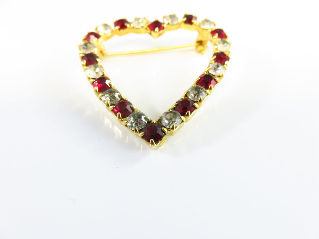 Heart Brooch With Red & White Rhinestone Surround in Gold Tone Setting