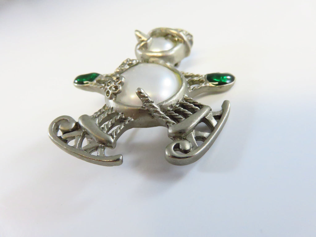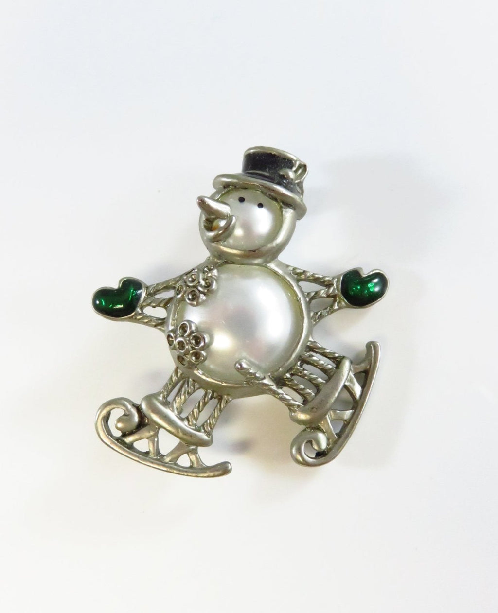Ice Skating Snowman Brooch Jelly Belly Style Enameled Pewter Color Christmas Brooch