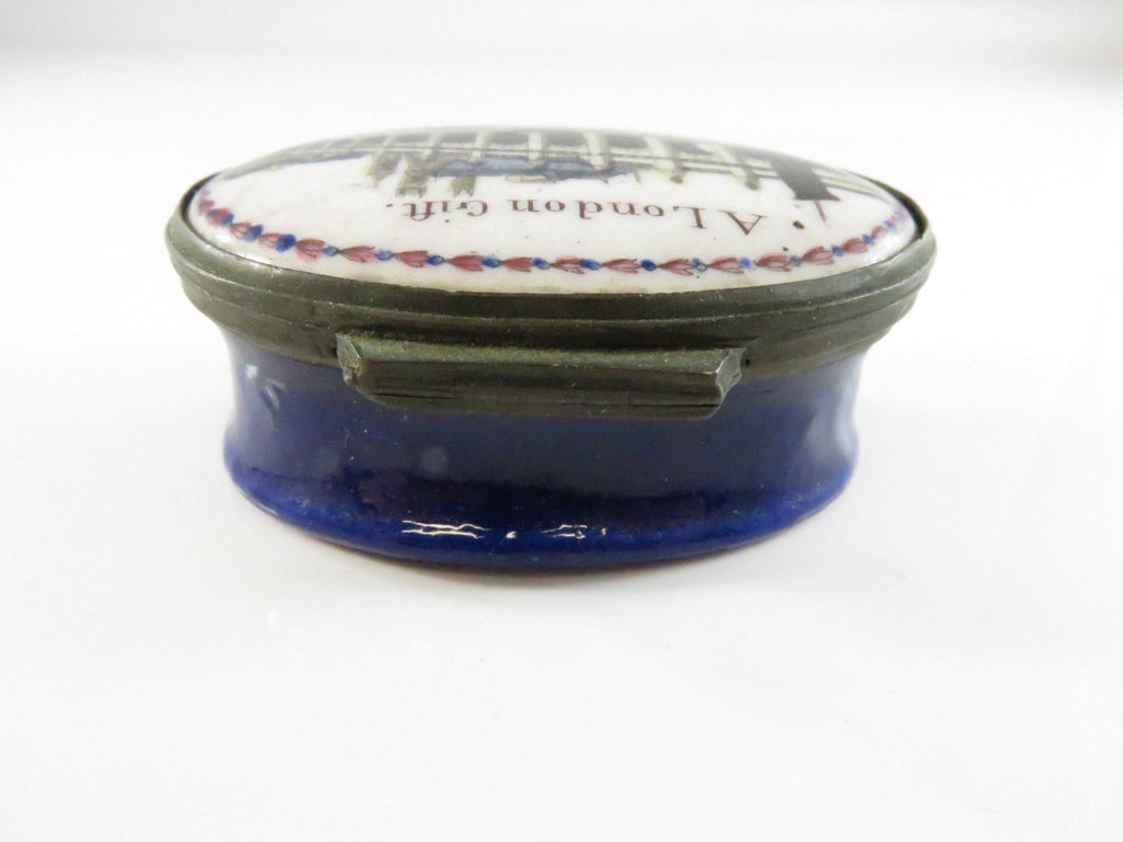c1780 George III Enamel Patch Box - "A London Gift" Westminster Bridge - Rare