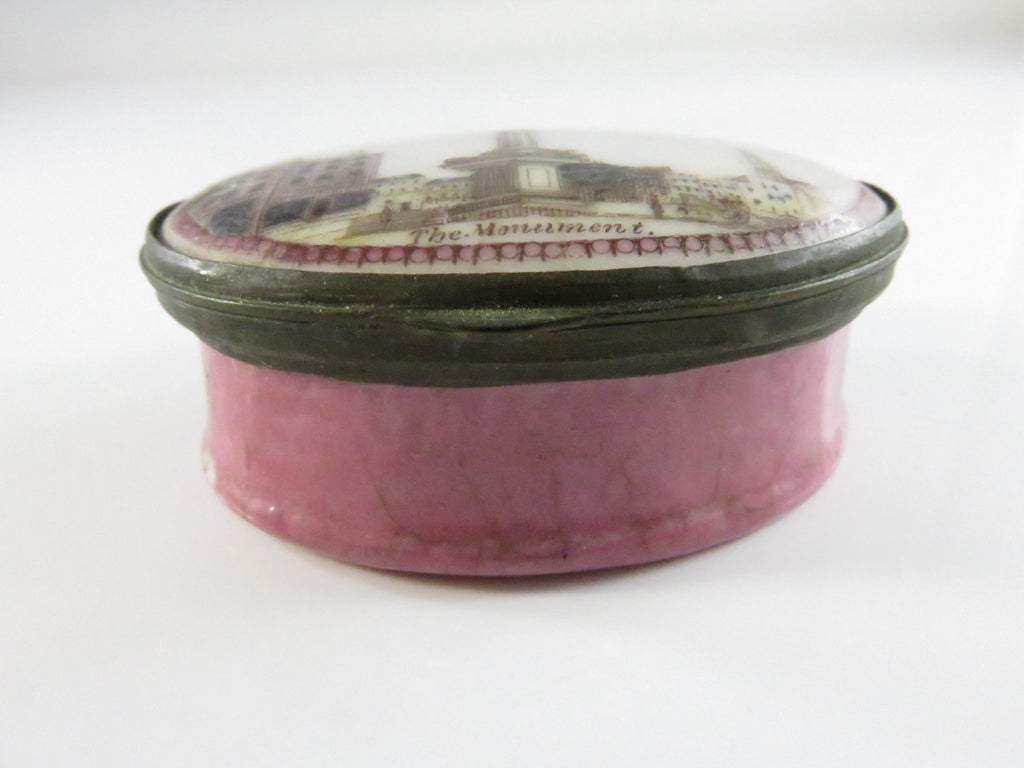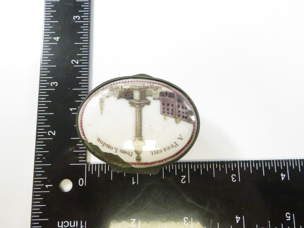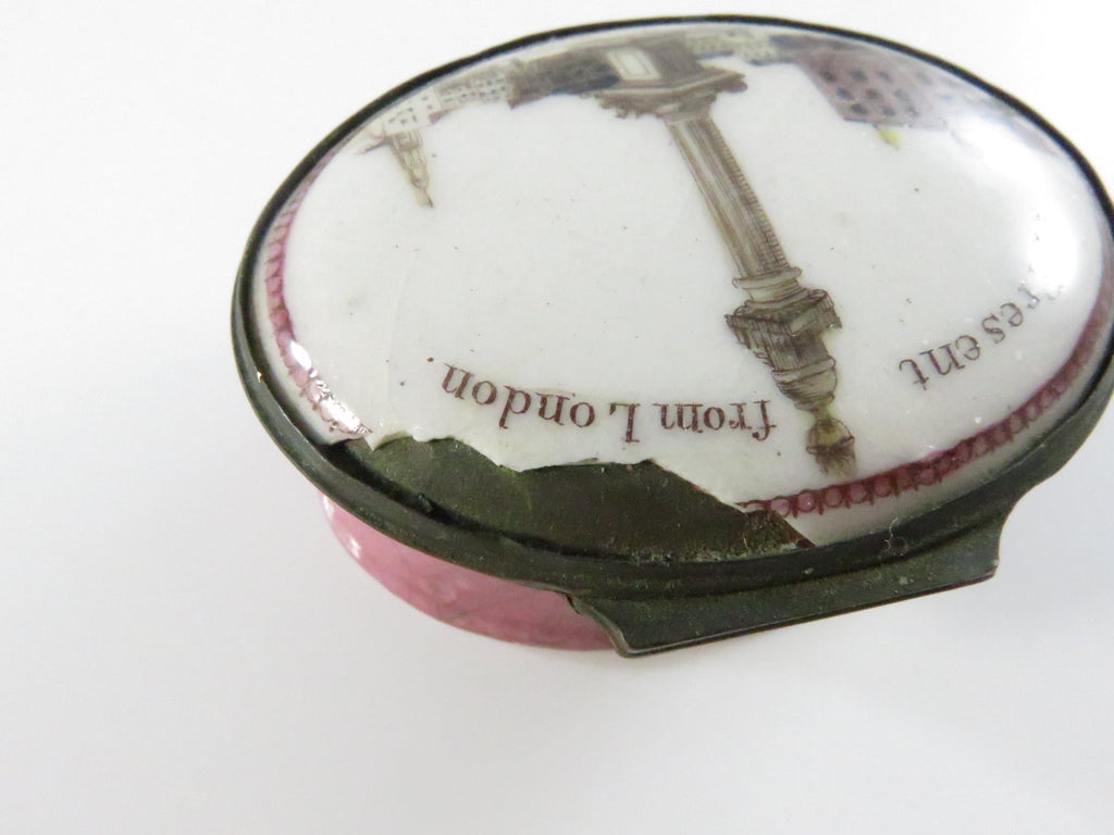 c1780 Georgian Enameled Patch Box - "A Present from London The Monument"