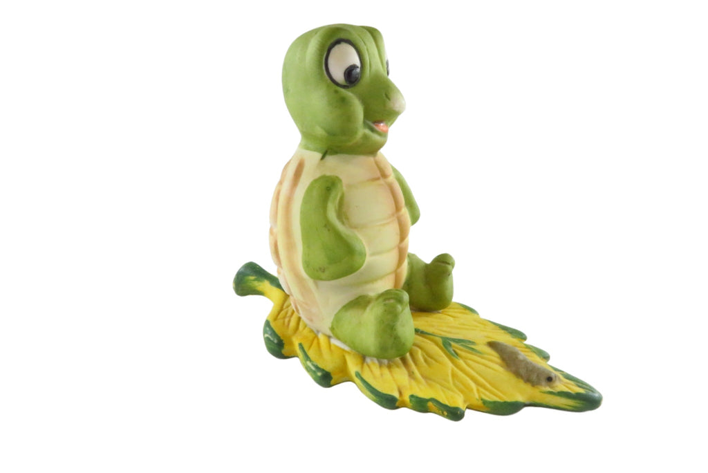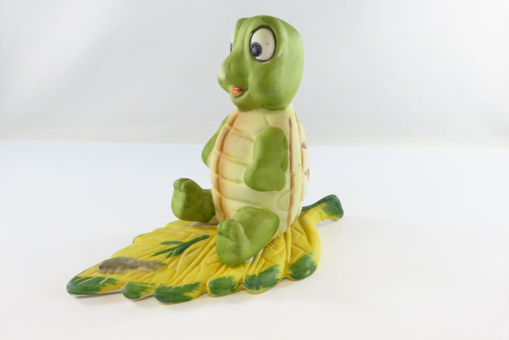 Ceramic Turtle on Leaf Figurine Hand Painted Taiwan Homco