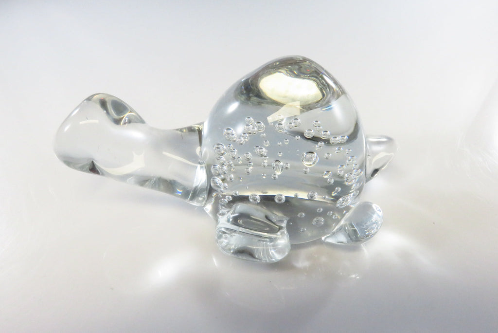Crystal Clear Bubble Glass Turtle Paperweight Long Neck 4 1/2"